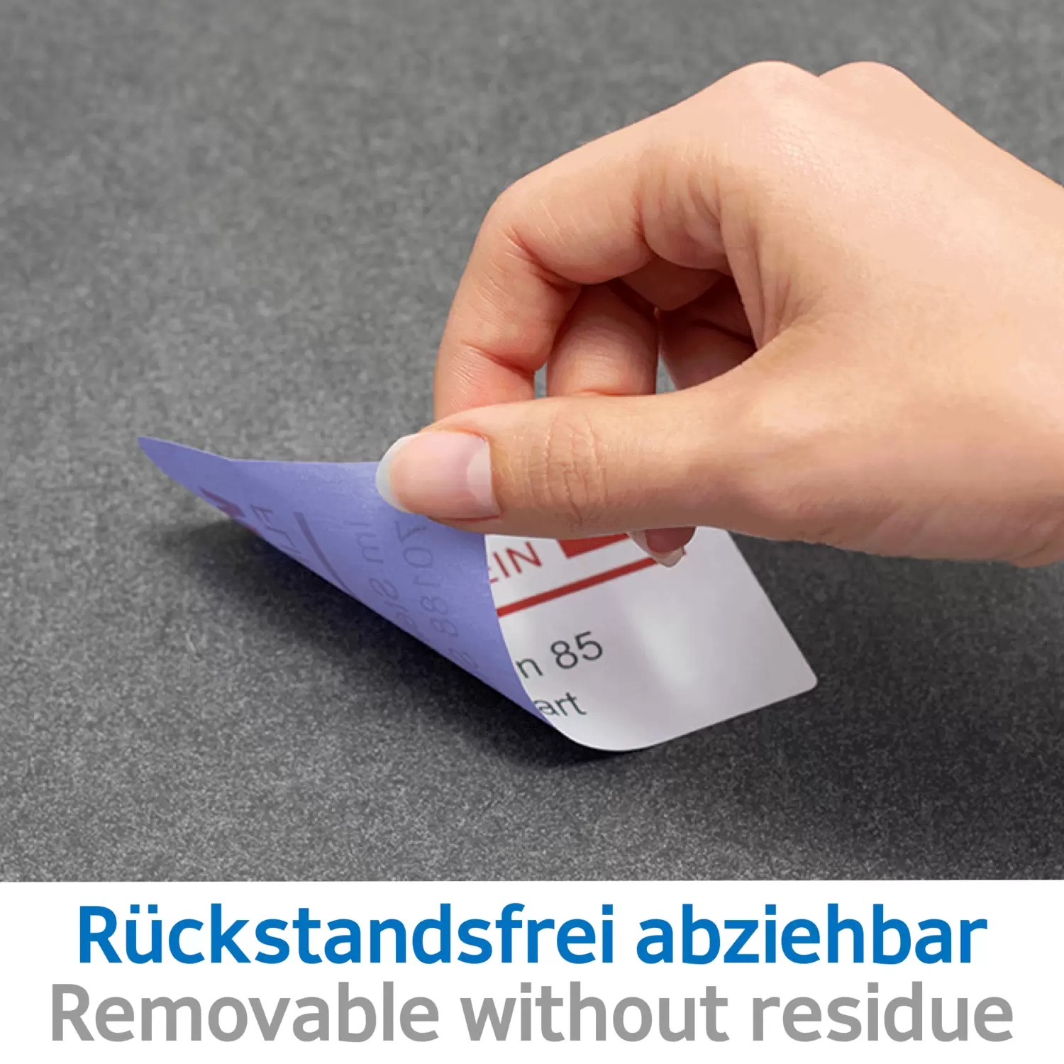 Die ablösbaren Etiketten können rückstandslos von Papier, Pappe oder Karton wieder abgelöst werden.