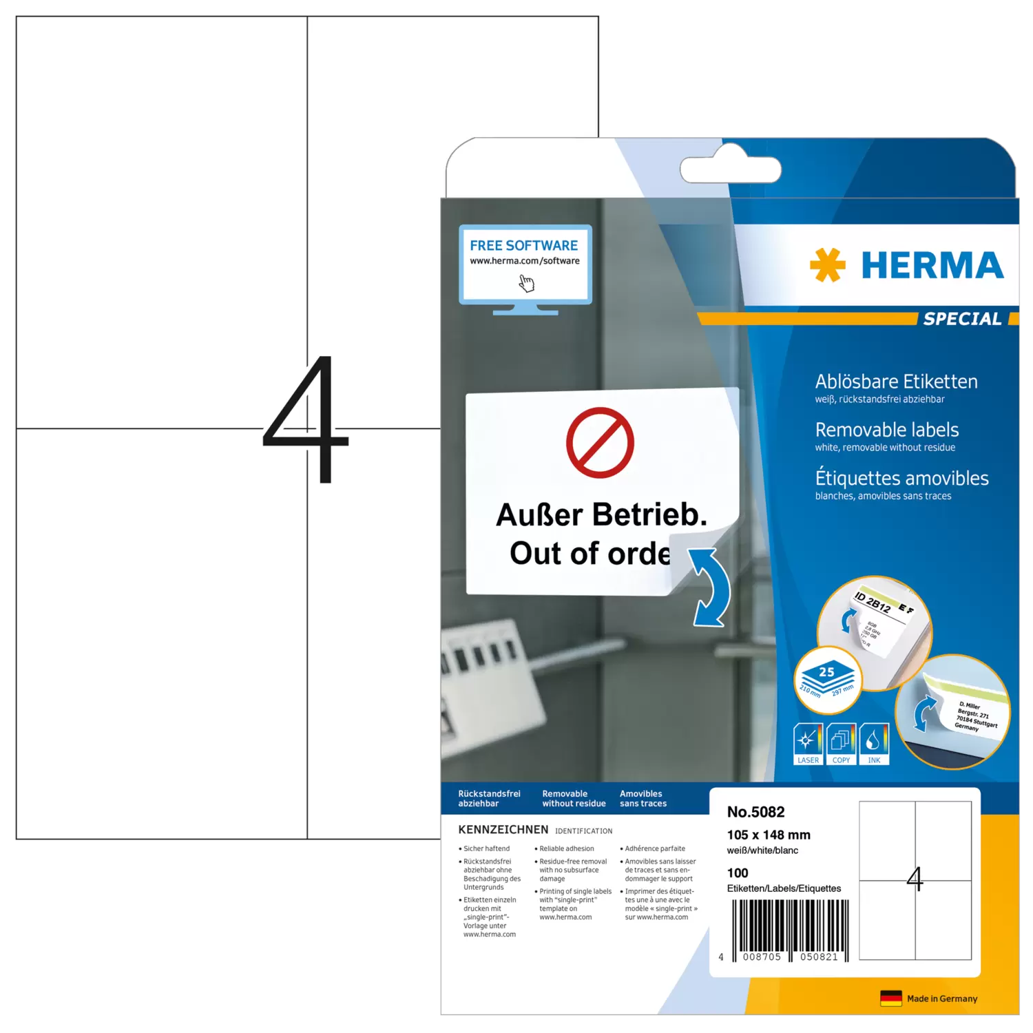 | Inhalt | 100 Etiketten / 25 Blatt |