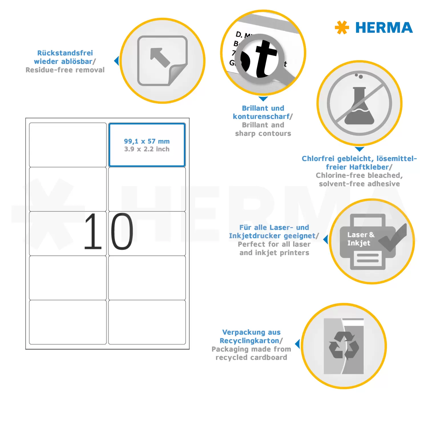 Ablösbare Adressetiketten A4, 99,1 x 57 mm, weiß