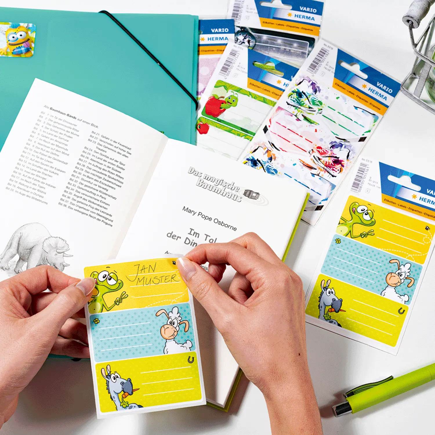 - Selbstklebende Papieretiketten bringen Spaß und Ordnung auf Bücher und Hefte