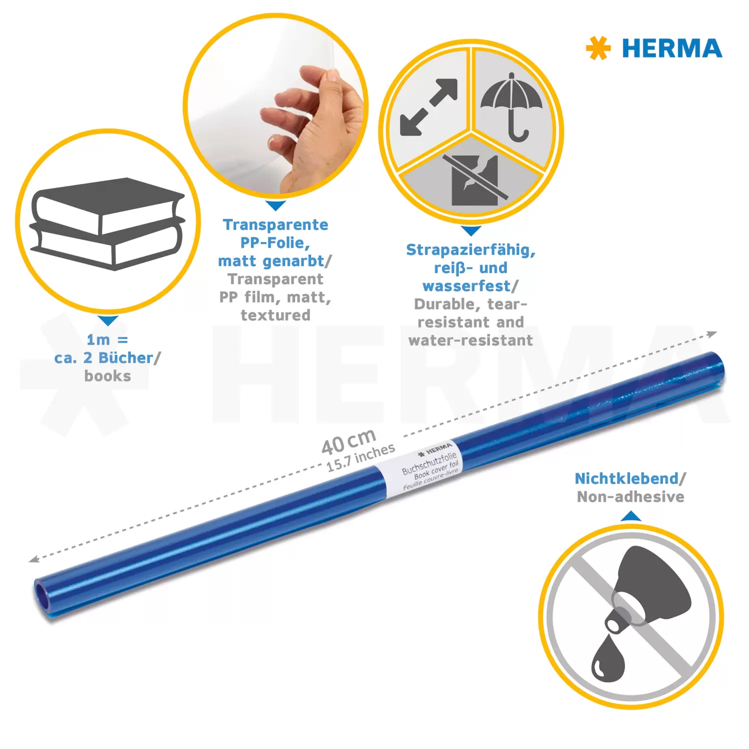 Transparente, besonders reißfeste Buchschutzfolie aus Polypropylen. Der perfekte Schutz für alle Bücher.