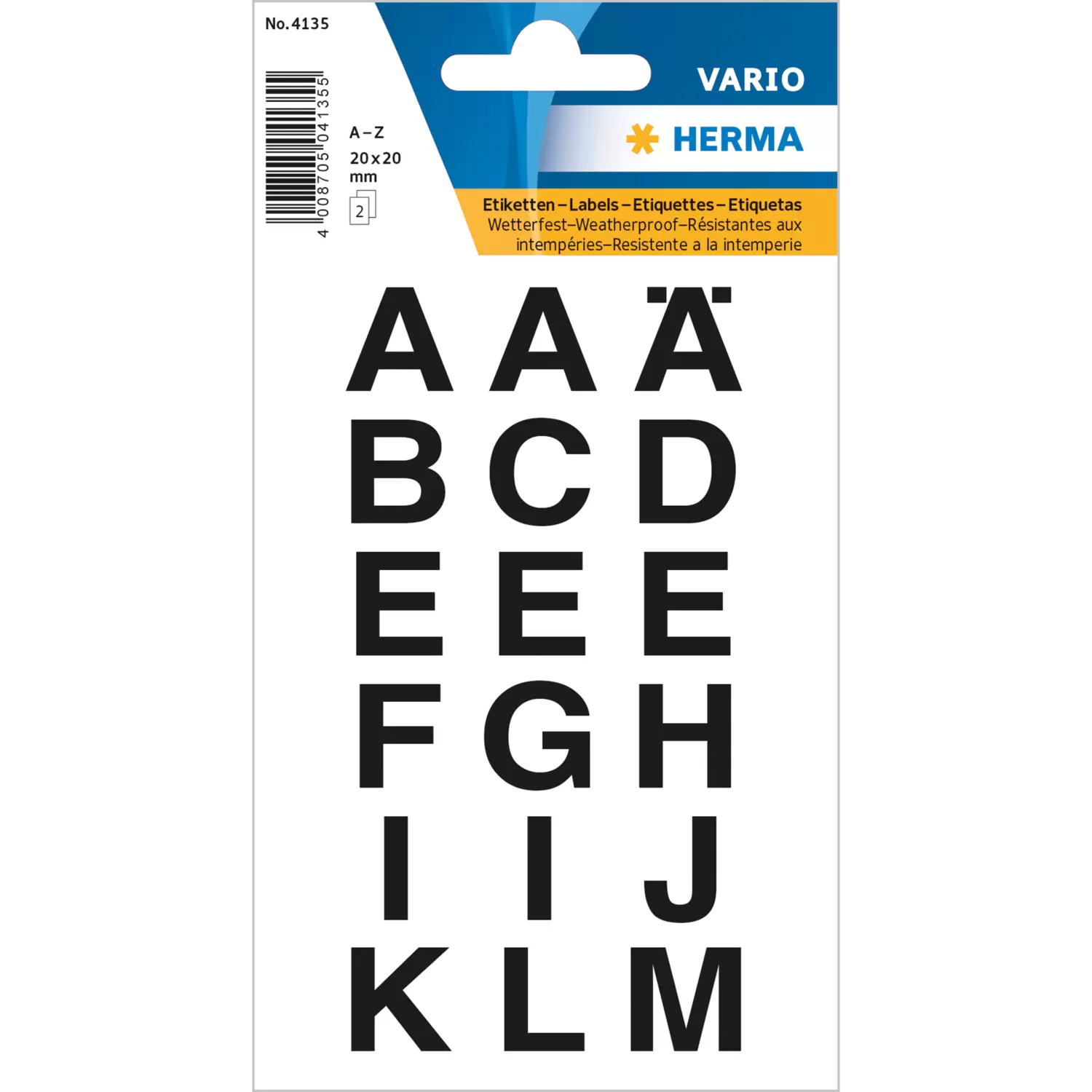 Buchstaben 20x20 mm A-Z schwarz, wetterfeste, transparente Folie