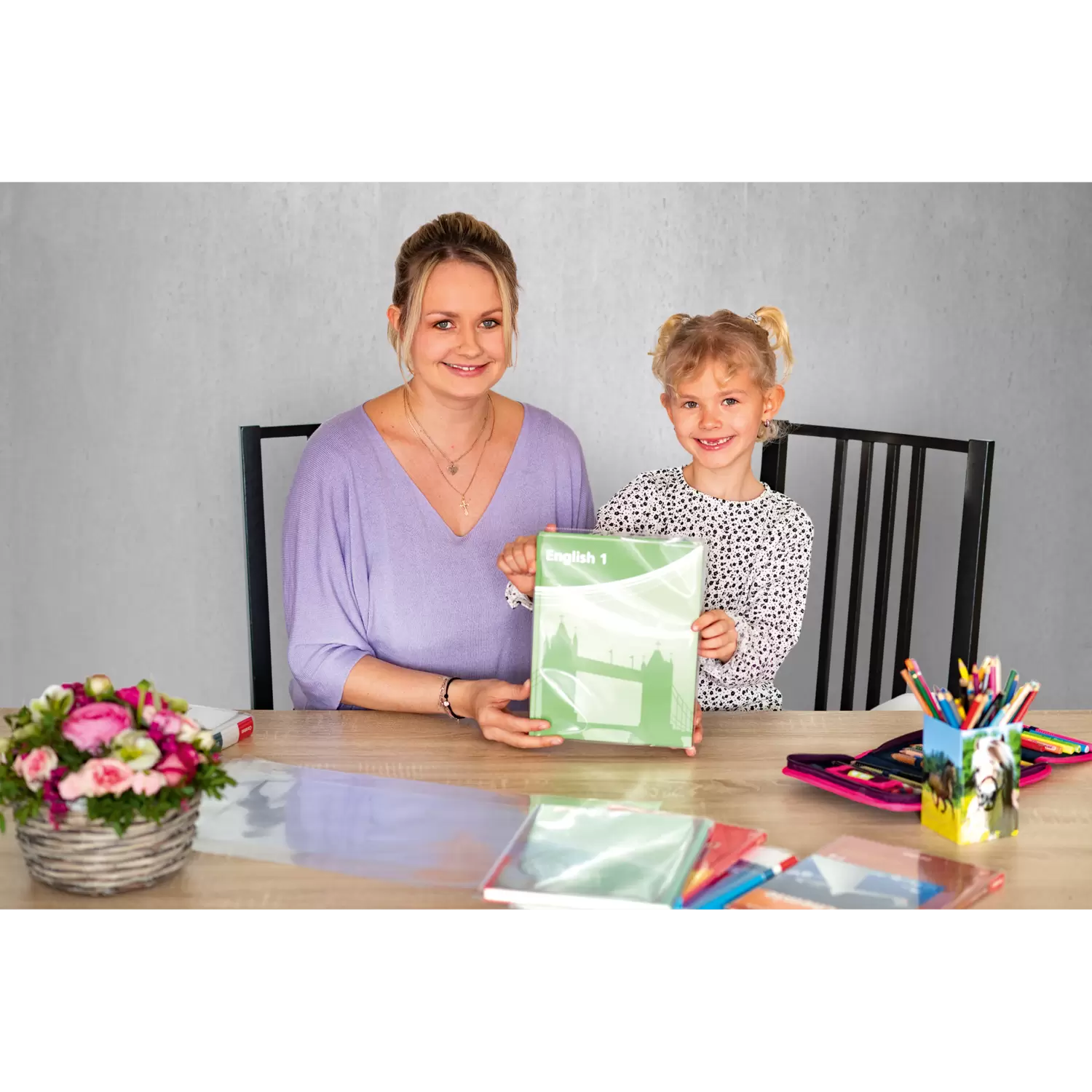 Schere, Klebstoff, Klebestreifen oder andere Hilfsmittel sind nicht notwendig um ein Buch perfekt mit HERMA Buchschonern für Kinder-, Fach- und Sachbüchern, einzubinden.