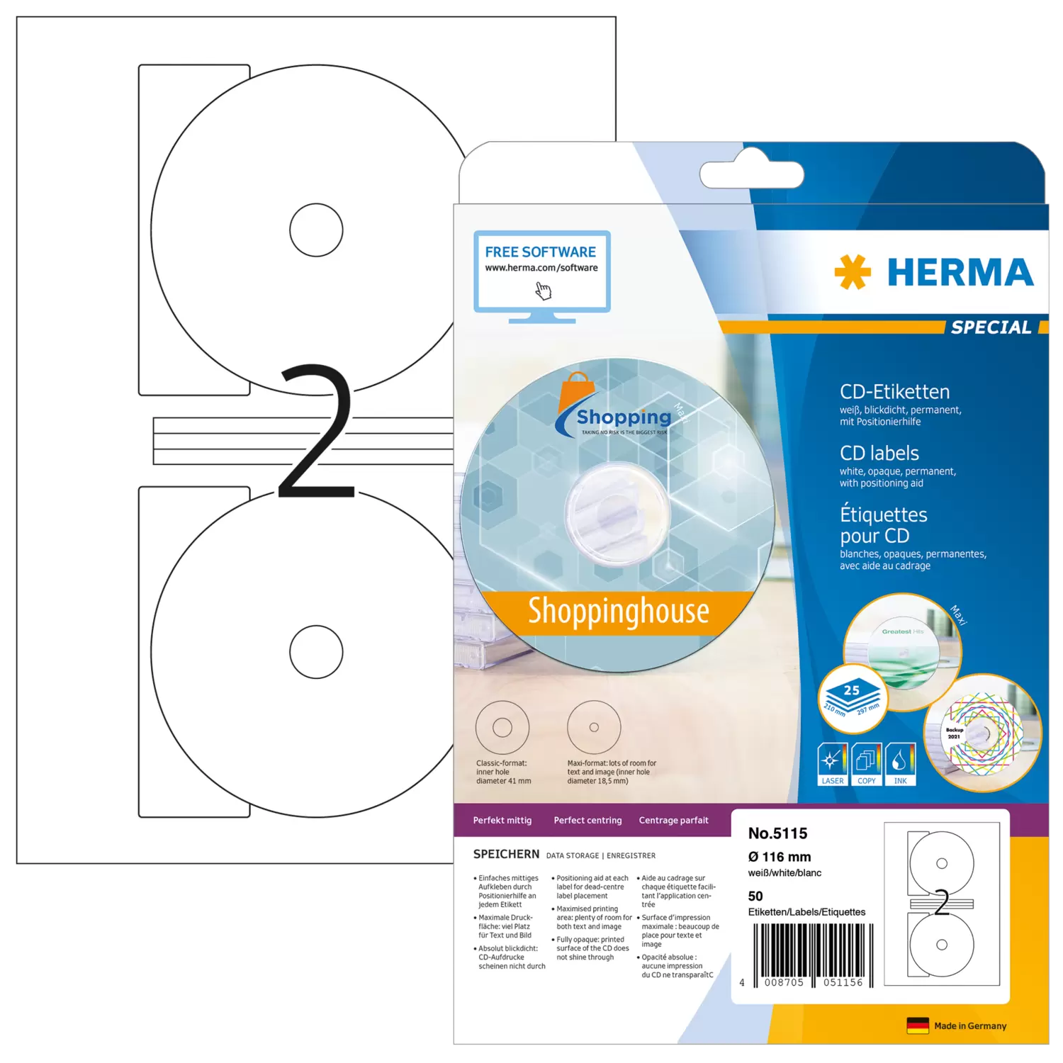 - Einfach mittig Aufkleben dank Positionierhilfe an jedem Etikett, sichere Haftung auch in High-Speed-Laufwerken