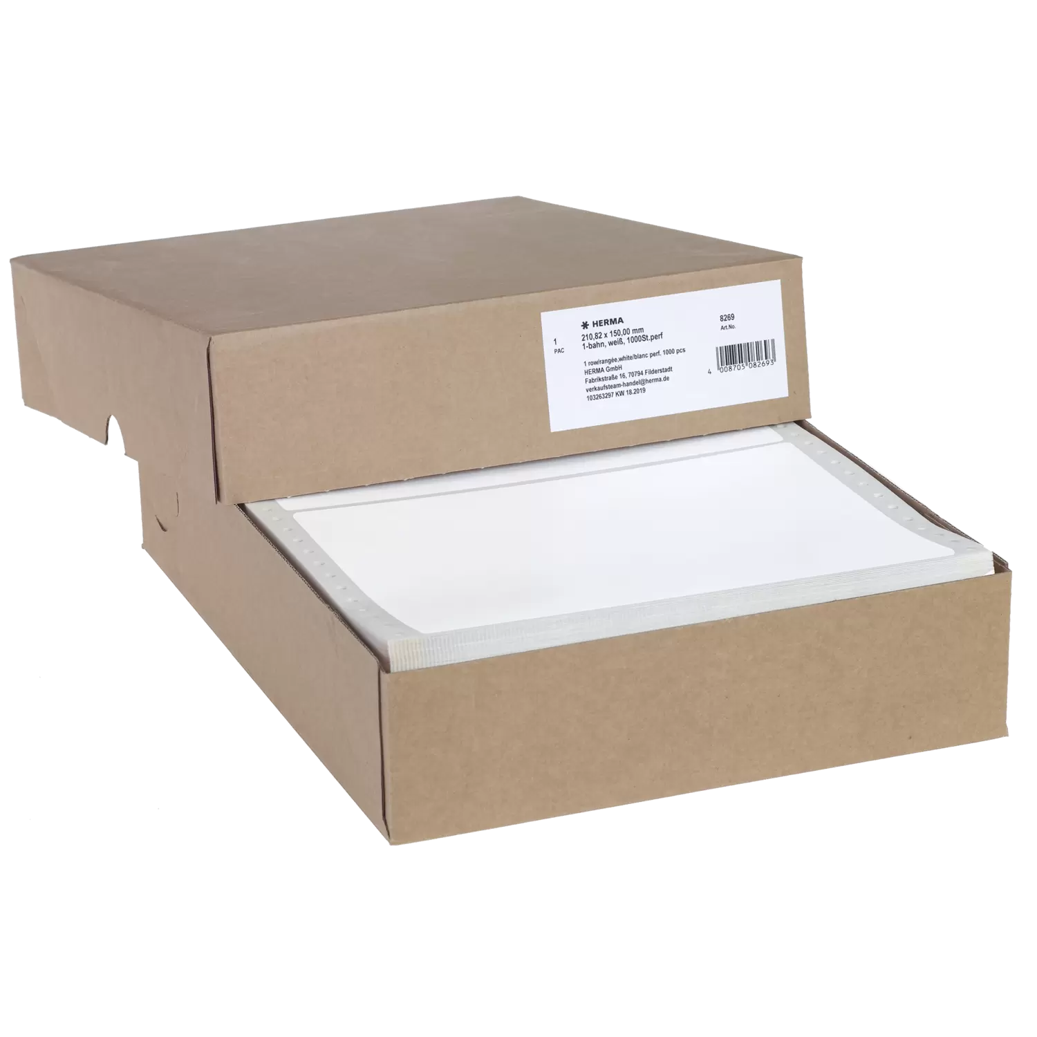 Computeretiketten endlos 210,82 x 150,0 mm, 1-bahnig, weiß, perforiert, permanent haftend