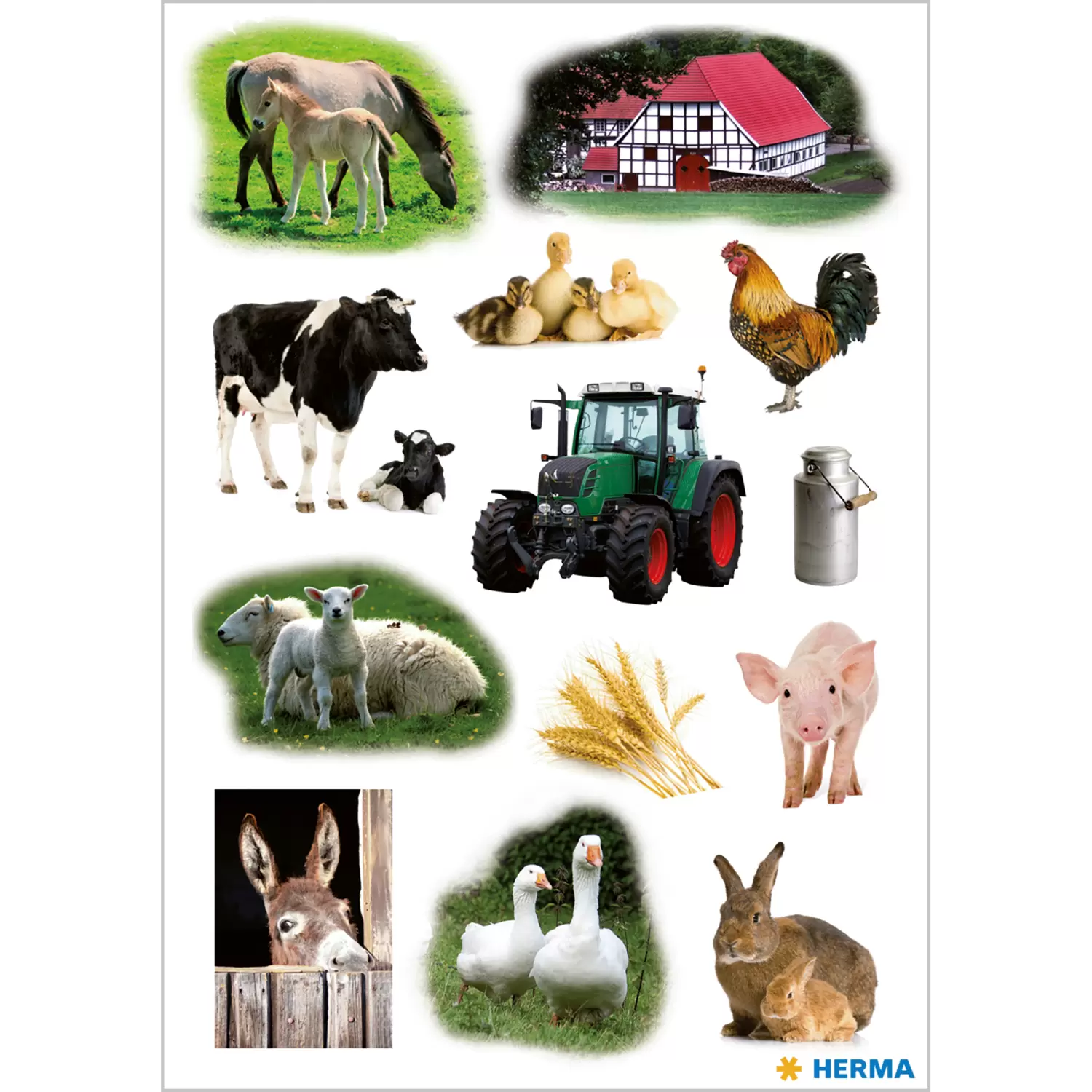 Urlaub auf dem Bauernhof, manche Kinder durften das schon erleben, nahezu jedes Kind wünscht es sich: Einmal auf einem richtigen Bauernhof sein. Mit den Stickern "Bauernhof Tiere" von HERMA ist der Bauernhof ganz nah. Die verschiedenen Tiere wie Pferde, Enten Küken, Gänse, Kühe, Hasen, und Schafe, sowie typische Bauernhof-Motive wie eine große Scheune, eine Milchkanne, ein Traktor oder Weizen, bringen sofort Bauernhof-Feeling. Sie eignen sich perfekt zum Verzieren, Tauschen und Sammeln oder als kleines Mitbringsel für jeden Bauernhof-Fan. Diese Sticker gehören einfach in jedes Stickeralbum. In einer Packung dieser wunderbar gestalteten Sticker sind 3 Blatt mit je 13 unterschiedlichen Motiven.