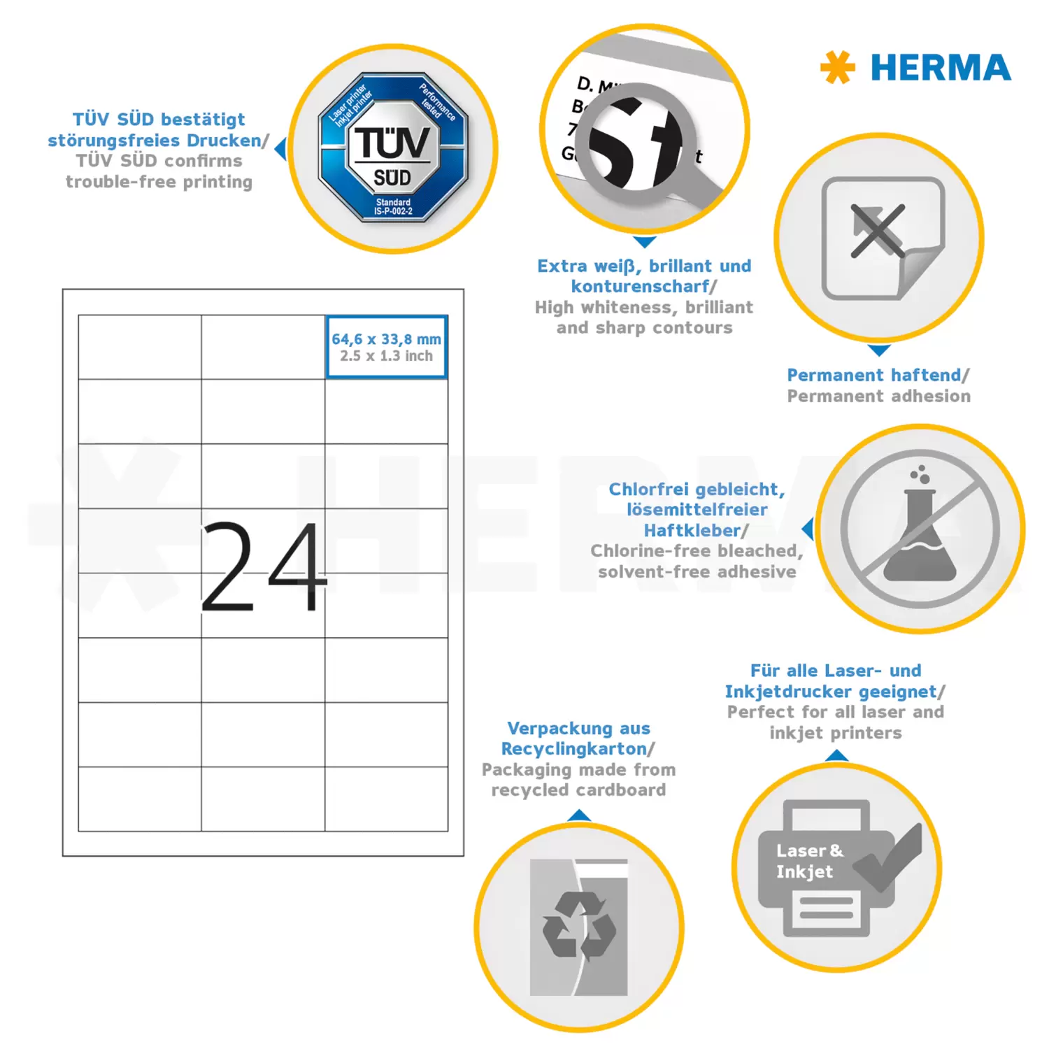 PREMIUM Etiketten A4, 64,6 x 33,8 mm, weiß, permanent haftend
