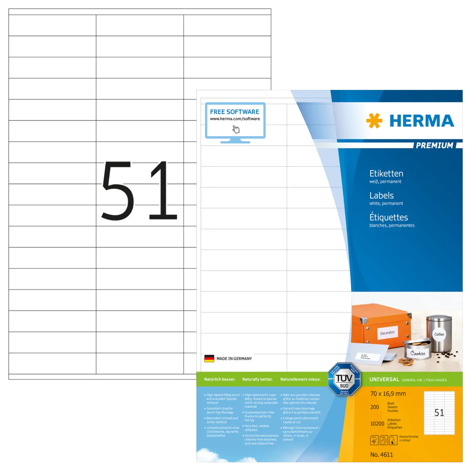 PREMIUM Etiketten A4, 70 x 16,9 mm, weiß, permanent haftend