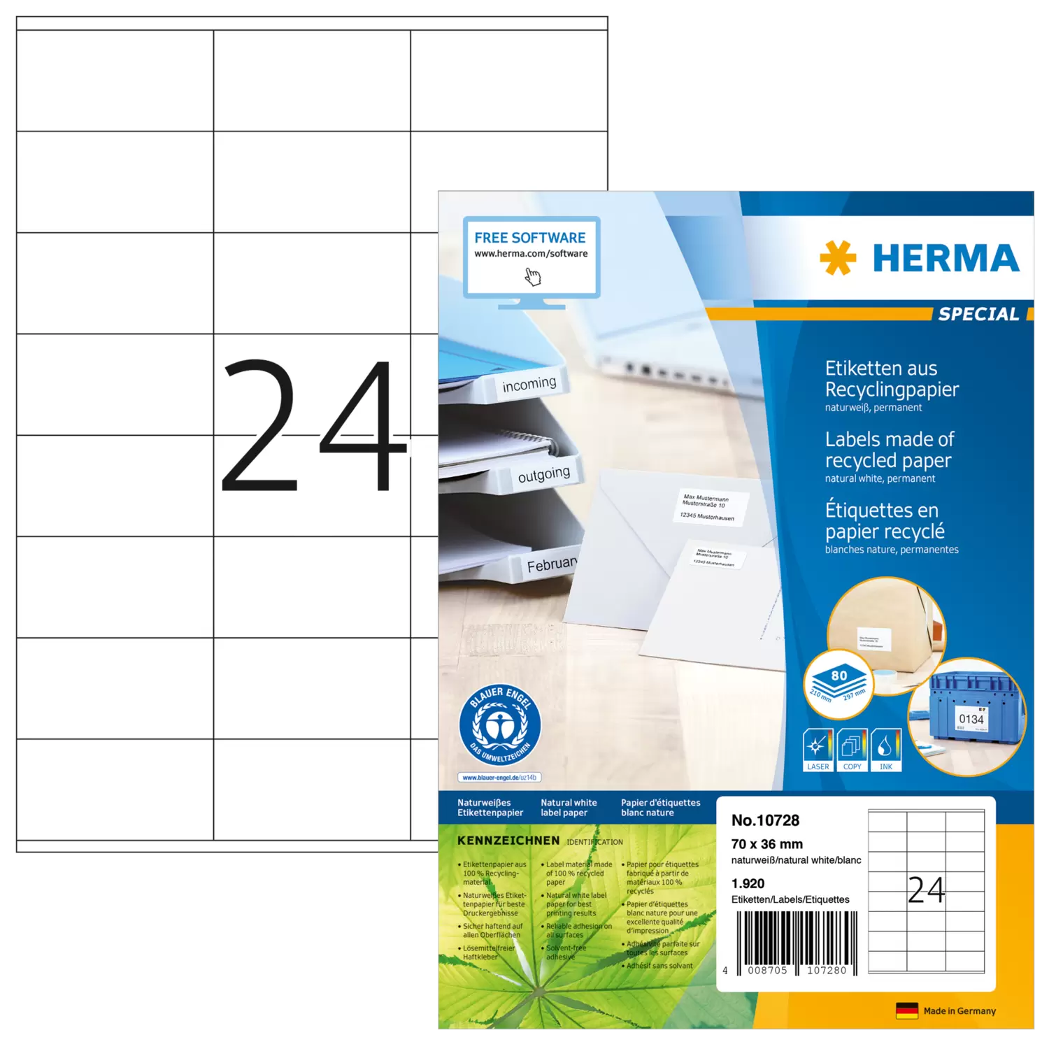 | Inhalt | 1920 Etiketten / 80 Blatt |