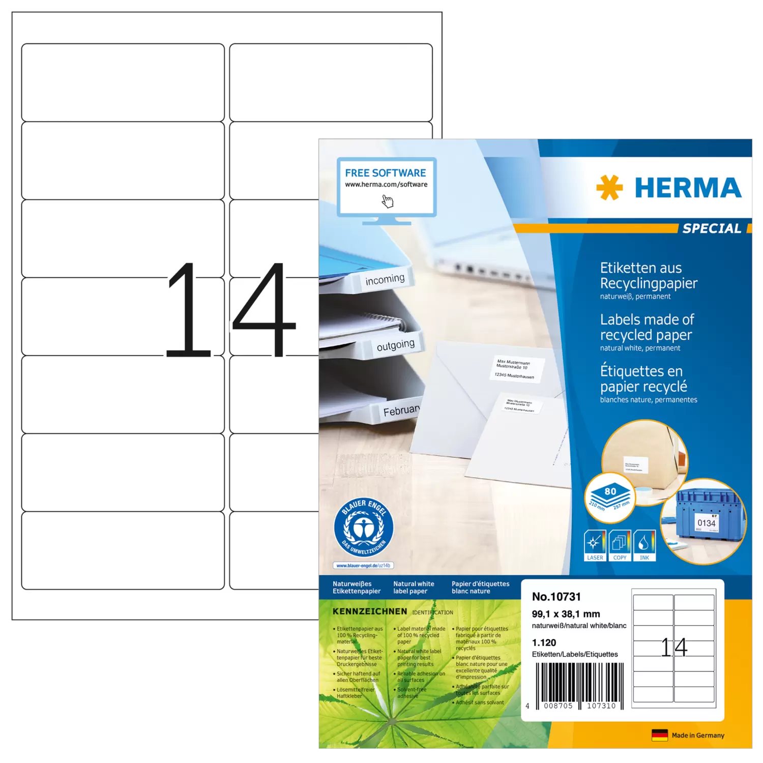 Etiketten aus Recyclingpapier A4, 99,1 x 38,1 mm, weiß, permanent haftend