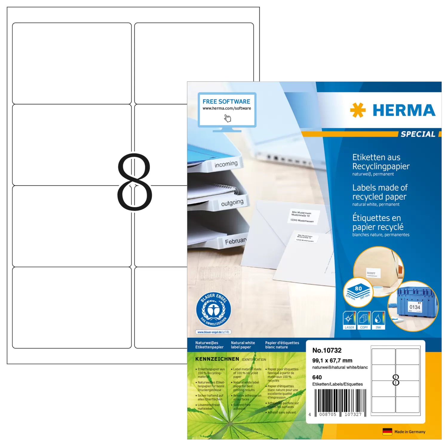 Etiketten aus Recyclingpapier A4, 99,1 x 67,7 mm, weiß, permanent haftend