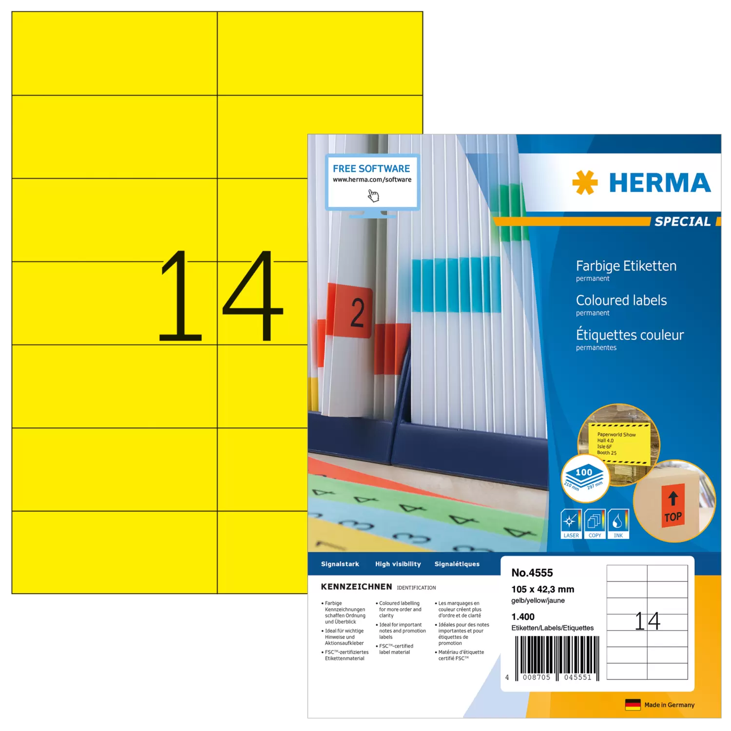 Farbige Etiketten A4, 105 x 42,3 mm, gelb, permanent haftend