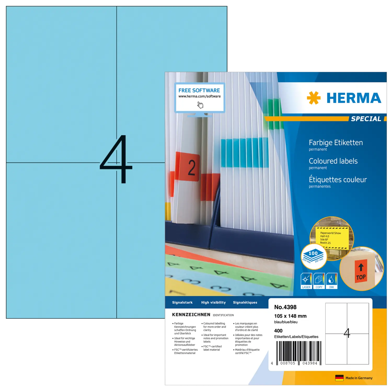 Farbige Etiketten A4, 105 x 148 mm, blau, permanent haftend