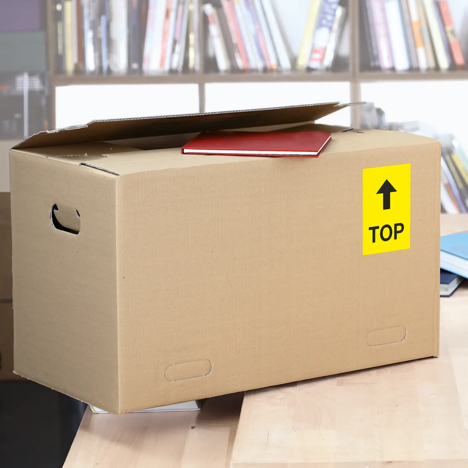 Die Etiketten sind hauptsächlich für Innenanwendungen geeignet, da die Etiketten nicht aus Folie, sondern aus Papier bestehen. In unserem Sortiment führen wir jedoch auch gelbe Folienetiketten, die für Außenanwendungen geeignet sind.