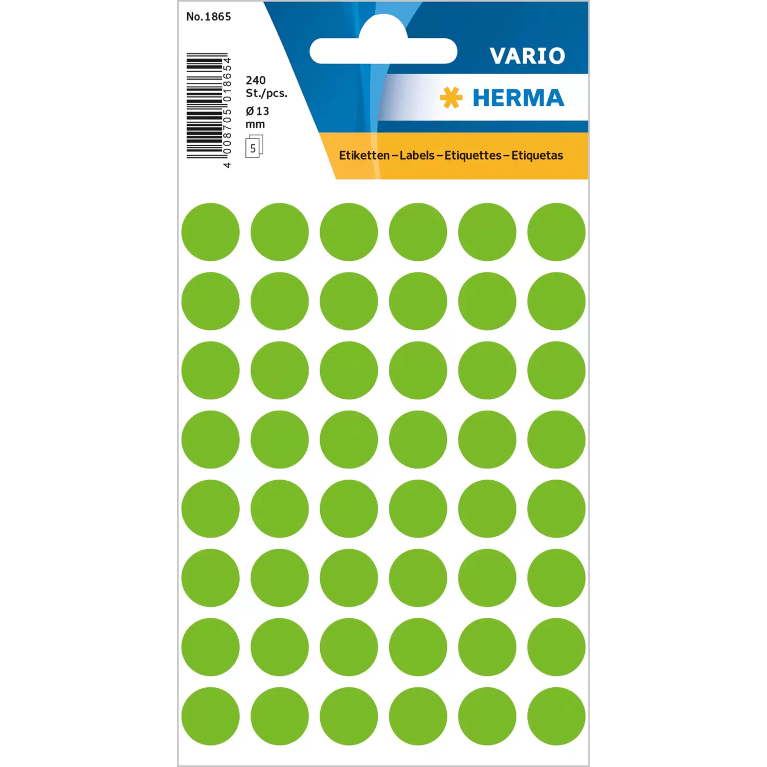 Vielzwecketiketten/Farbpunkte Ø 13 mm, rund, grün, permanent haftend, zur Handbeschriftung