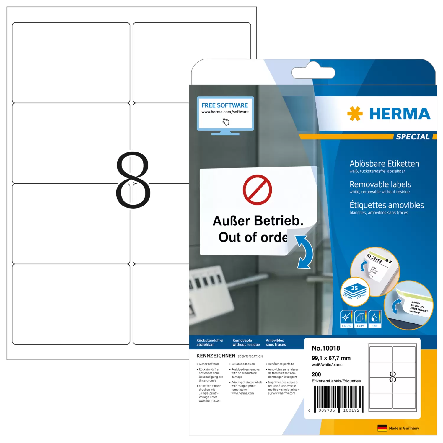 Ablösbare Adressetiketten A4, 99,1 x 67,7 mm, weiß, blickdicht
