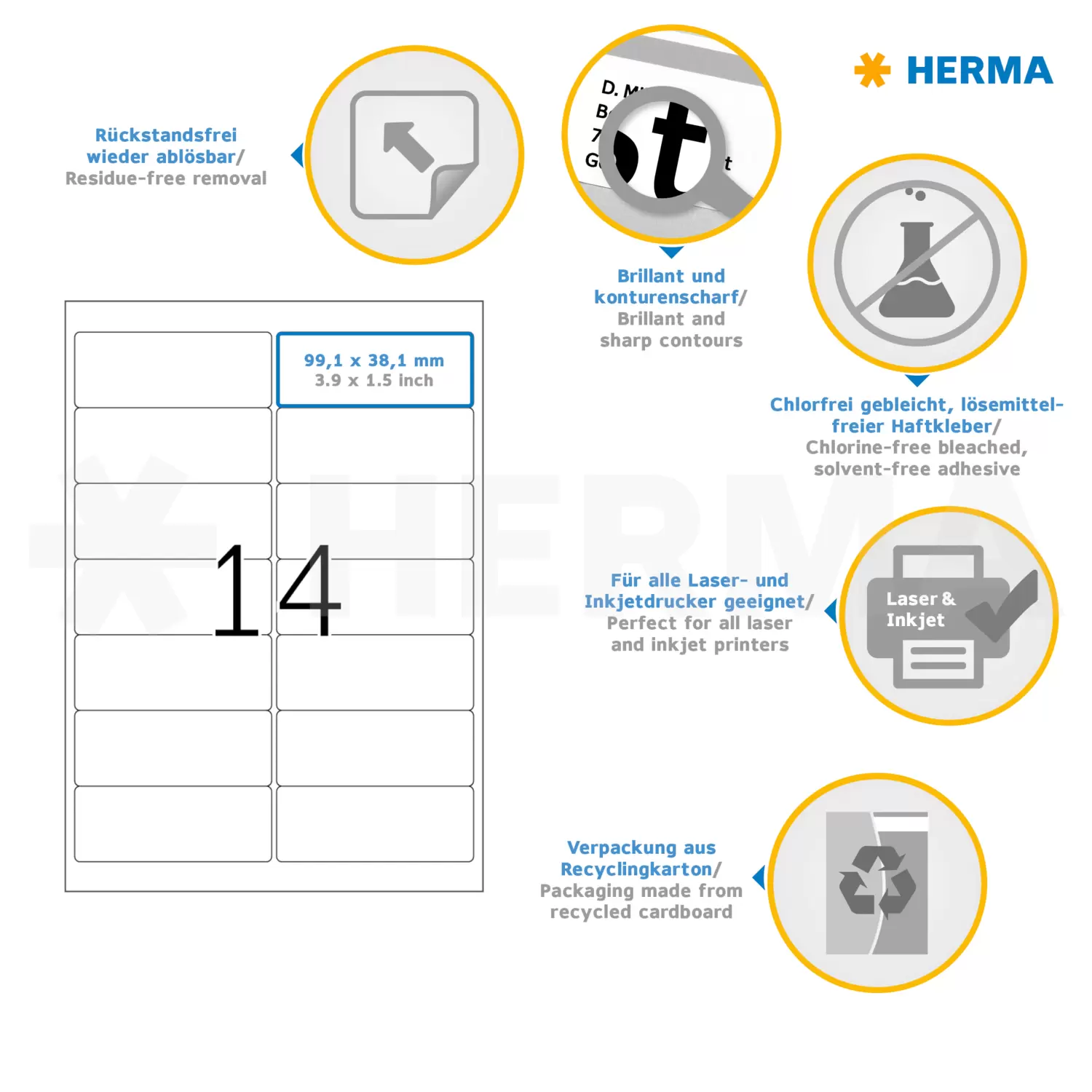 Ablösbare Adressetiketten A4, 99,1 x 38,1 mm, weiß