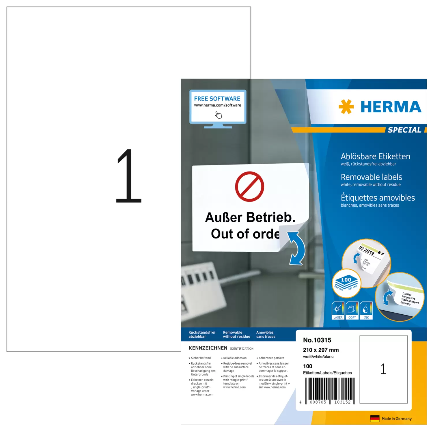 Ablösbare Etiketten A4, 210 x 297 mm, weiß
