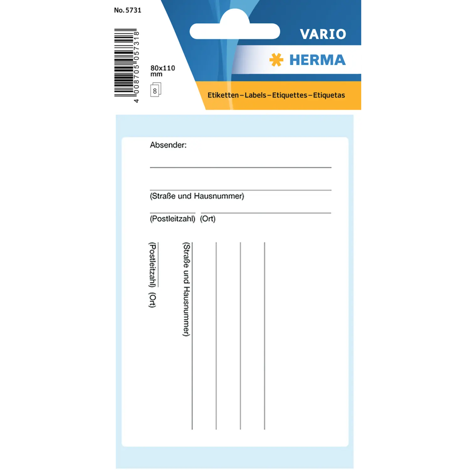 Textetiketten Paketadressen 80 x 110 mm, selbstklebend, 8 Stück
