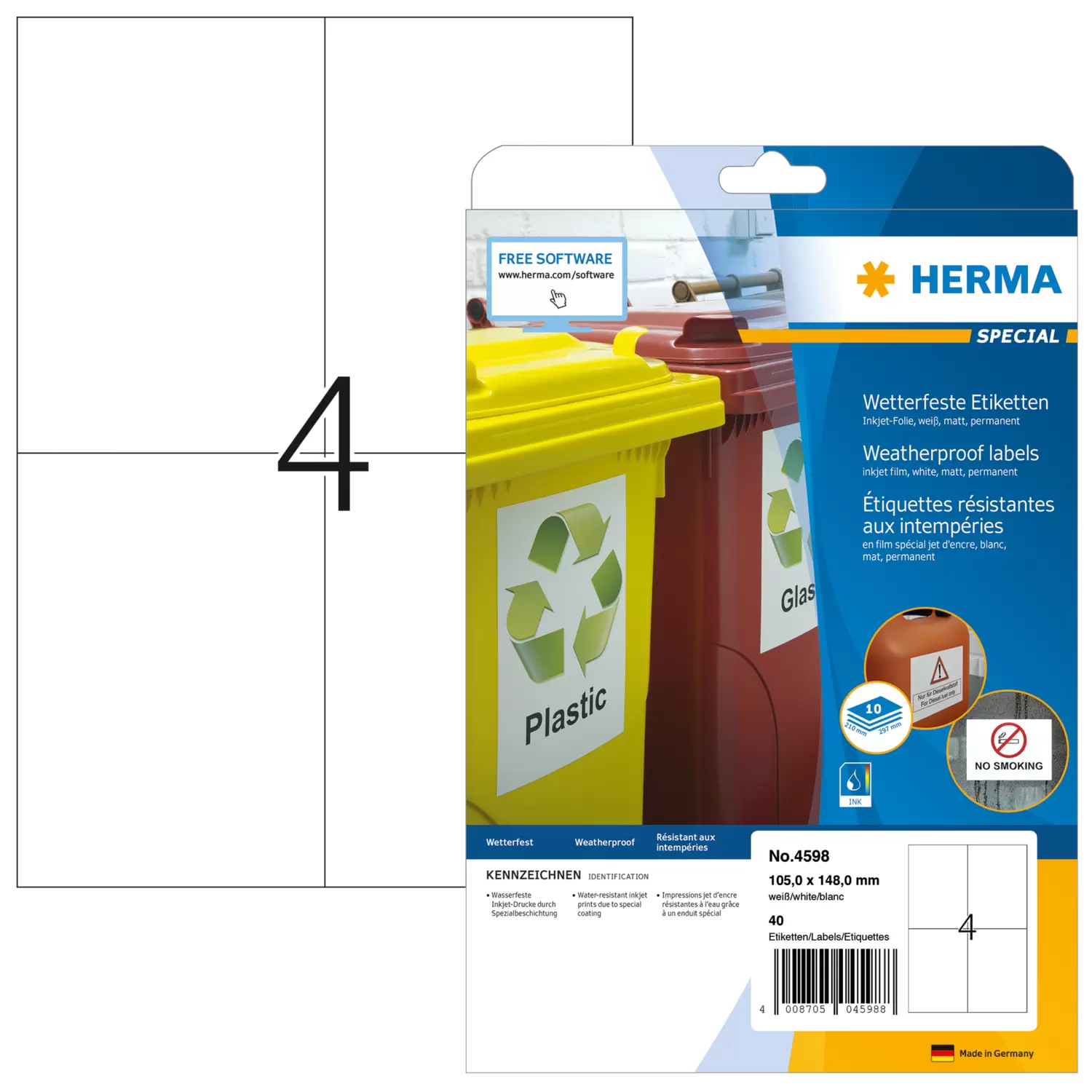 Wetterfeste Inkjet-Etiketten A4, 105,0 x 148,0 mm, weiß, permanent haftend