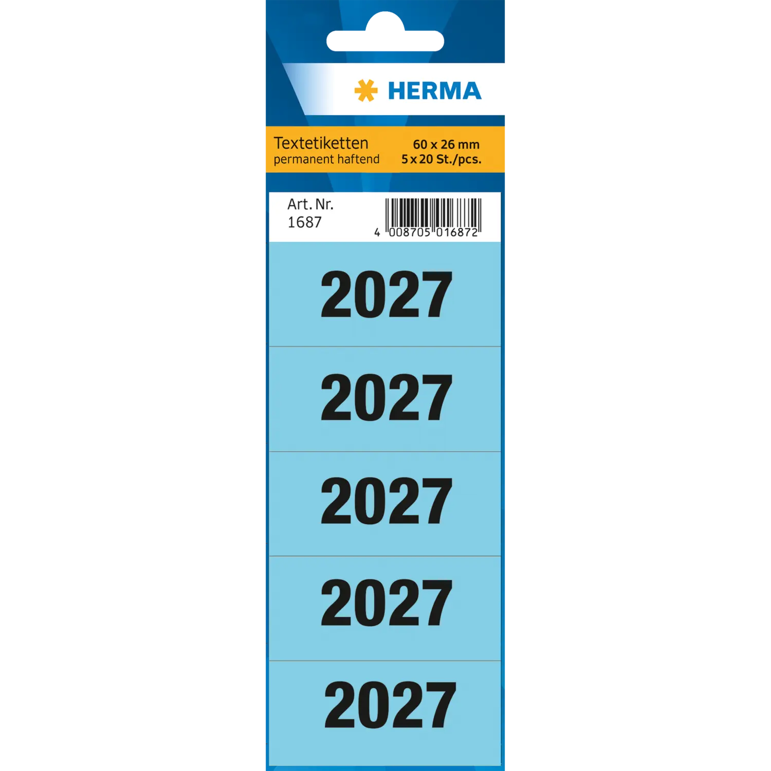 Jahreszahlen 2027 für Ordner, 60 x 26 mm, blau, permanent haftend