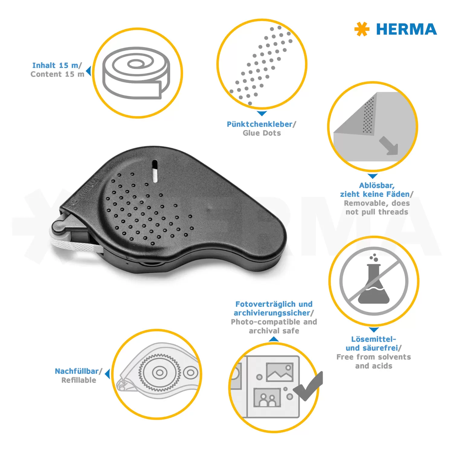 Klebespender Transfer, ablösbar, schwarz, 15 m