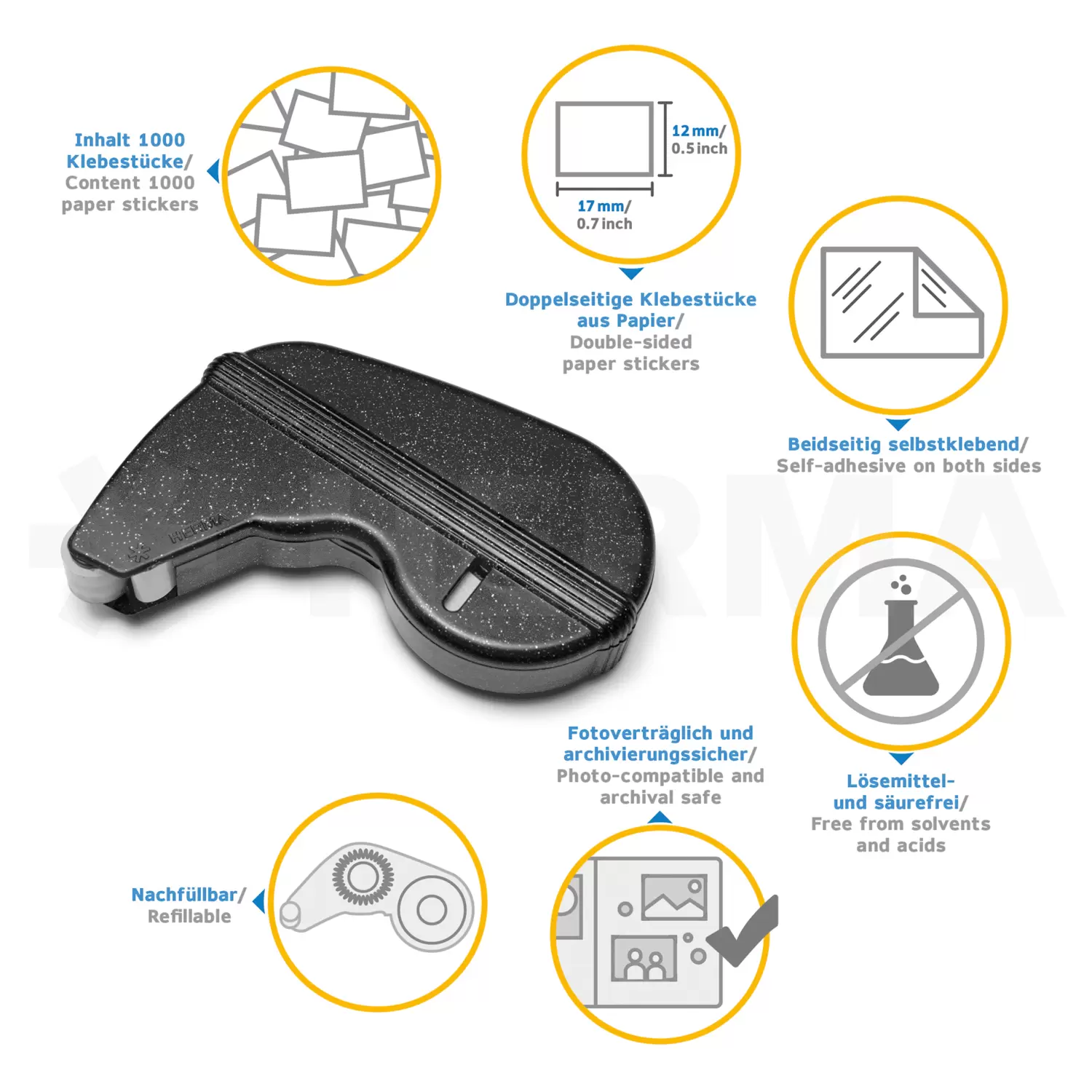 - Inklusive 1.000 Klebestücken im Format 12 x 13 mm
