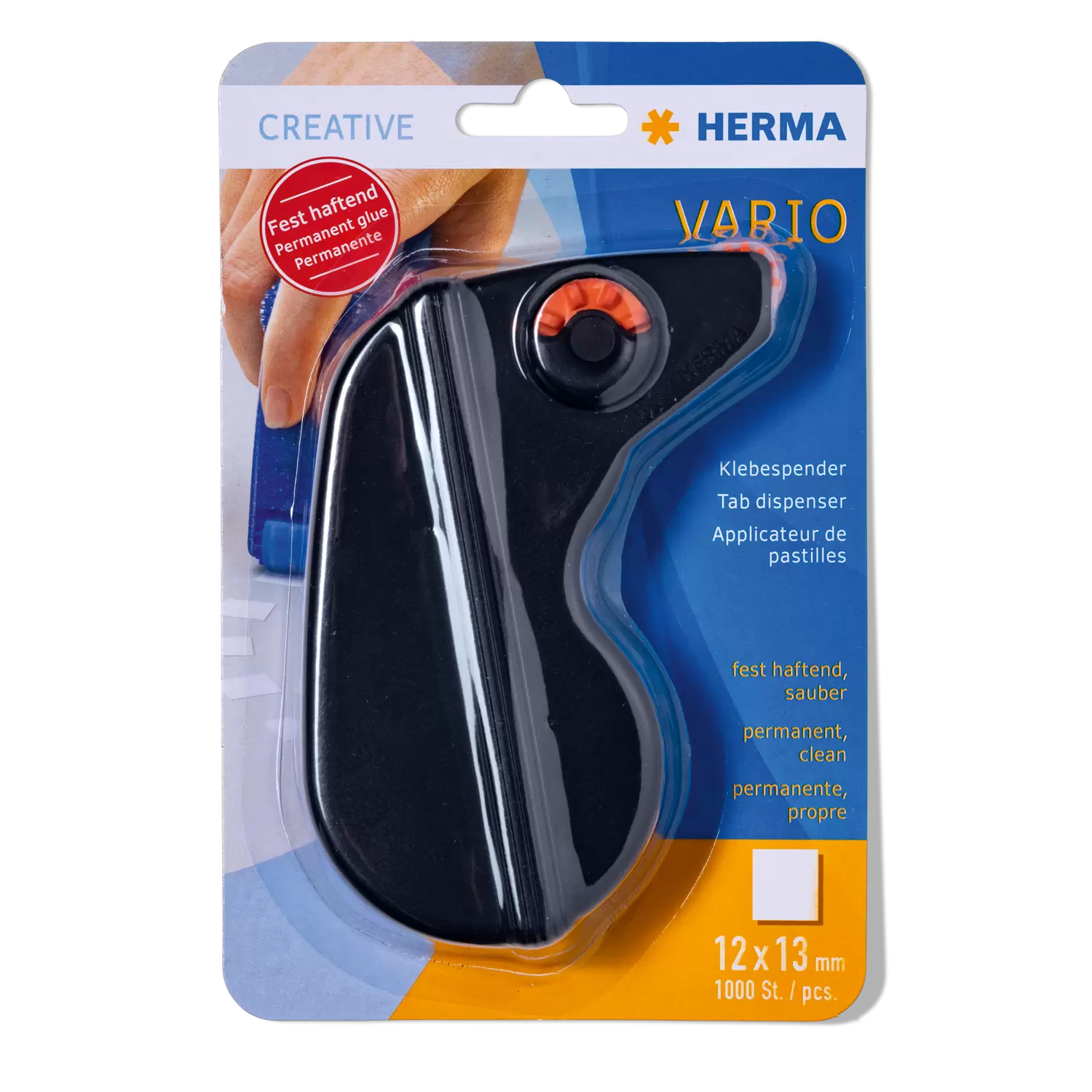 Die HERMA Klebespender Vario, fest haftend sind die schnelle und einfache Klebelösung für alle (K)Lebenslagen. 1.000 Klebestücke im Format 12 x 13 mm garantieren schnelles, sauberes und präzises Kleben auf Papier, Pappe und vielen weiteren Materialien und sind damit bestens für das Büro, die Schule, zum Basteln, zum Einkleben von Fotos oder zum kreativen Arbeiten mit Holz, Kork, Folie und anderen Materialien geeignet. Die Ergonomisch geformten Klebespender lassen sich mit einer Hand bedienen und sind dank der praktischen Nachfüllrolle stets einsatzbereit. Die Klebestücke sind lösemittel- und säurefrei, dabei fotoverträglich und archivierungsbeständig. Sie lassen sich einzeln oder in Serie Abrollen, somit ist sicherer Halt garantiert.