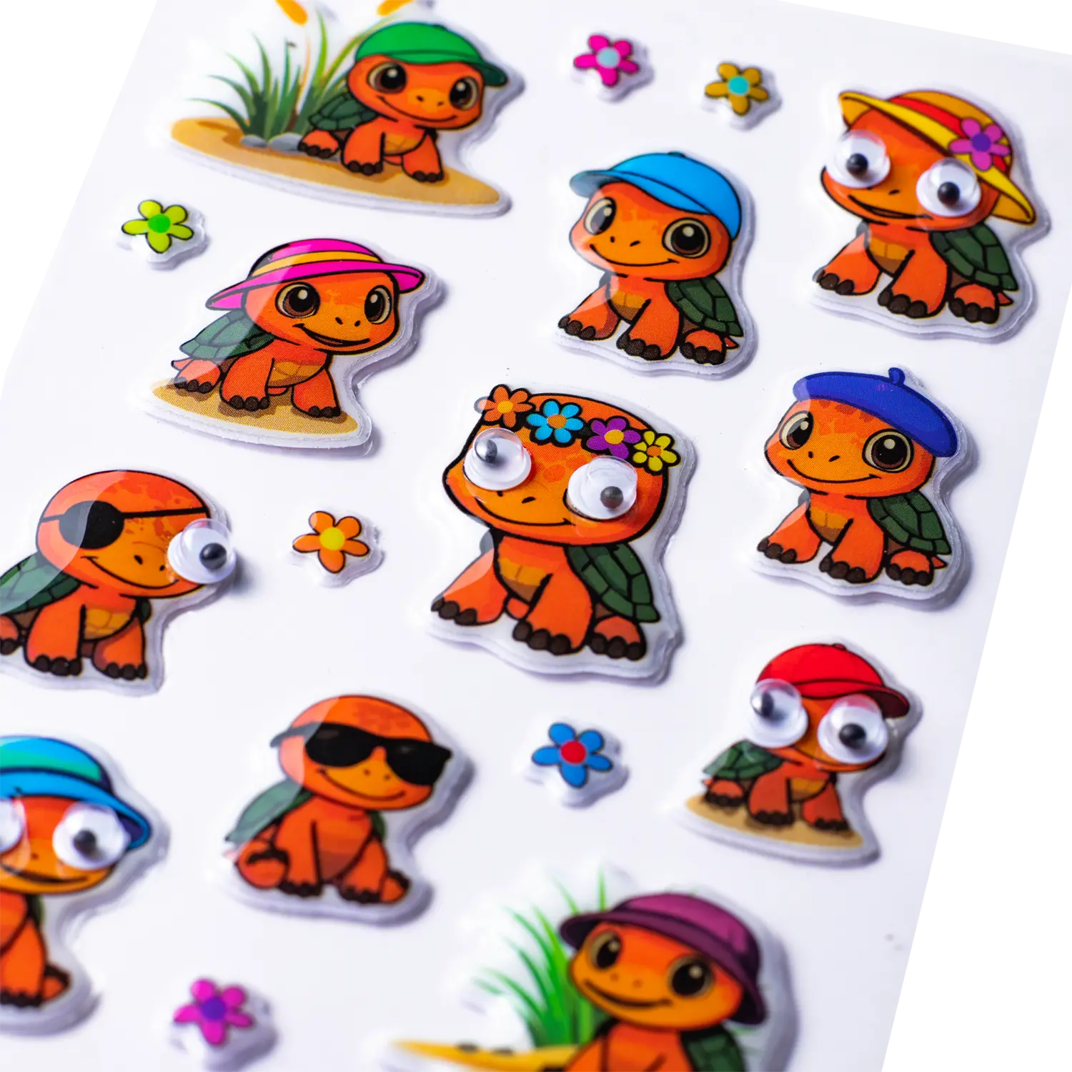 Diese Schildkröten Sticker verbinden Niedlichkeit mit einer verspielten Portion Humor. Jede Schildkröte präsentiert sich mit individuellen Accessoires von bunten Hüten bis hin zu stylischen Brillen und sorgt so für immer neue, charmante Überraschungen. Das besondere Highlight sind die beweglichen Wackelaugen, die den Motiven einen lebendigen und einzigartigen Ausdruck verleihen. Durch diese liebevolle Veredelung wirken die Sticker besonders originell und bringen sofort ein Schmunzeln ins Gesicht. Ideal zum Sammeln, Dekorieren oder Verschenken die Schildkröten sorgen überall für gute Laune und setzen auffällige Akzente. Ein detailreiches Set, das Kreativität anregt und mit seinem unverwechselbaren Look jede Sticker Sammlung bereichert.