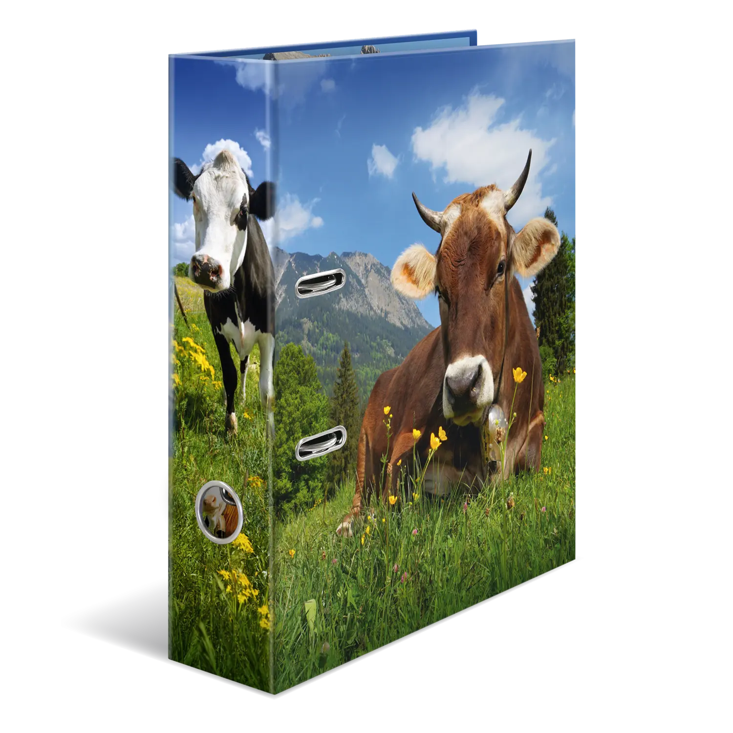 • Wunderschöner Motiv-Ordner mit tollem Almkuh-Design, außen und innen vollfächig bedruckt