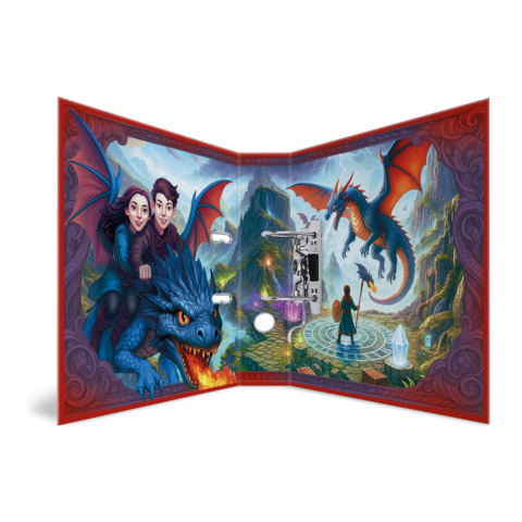 - Vollflächiges, folienveredeltes Design mit magischen Drachen