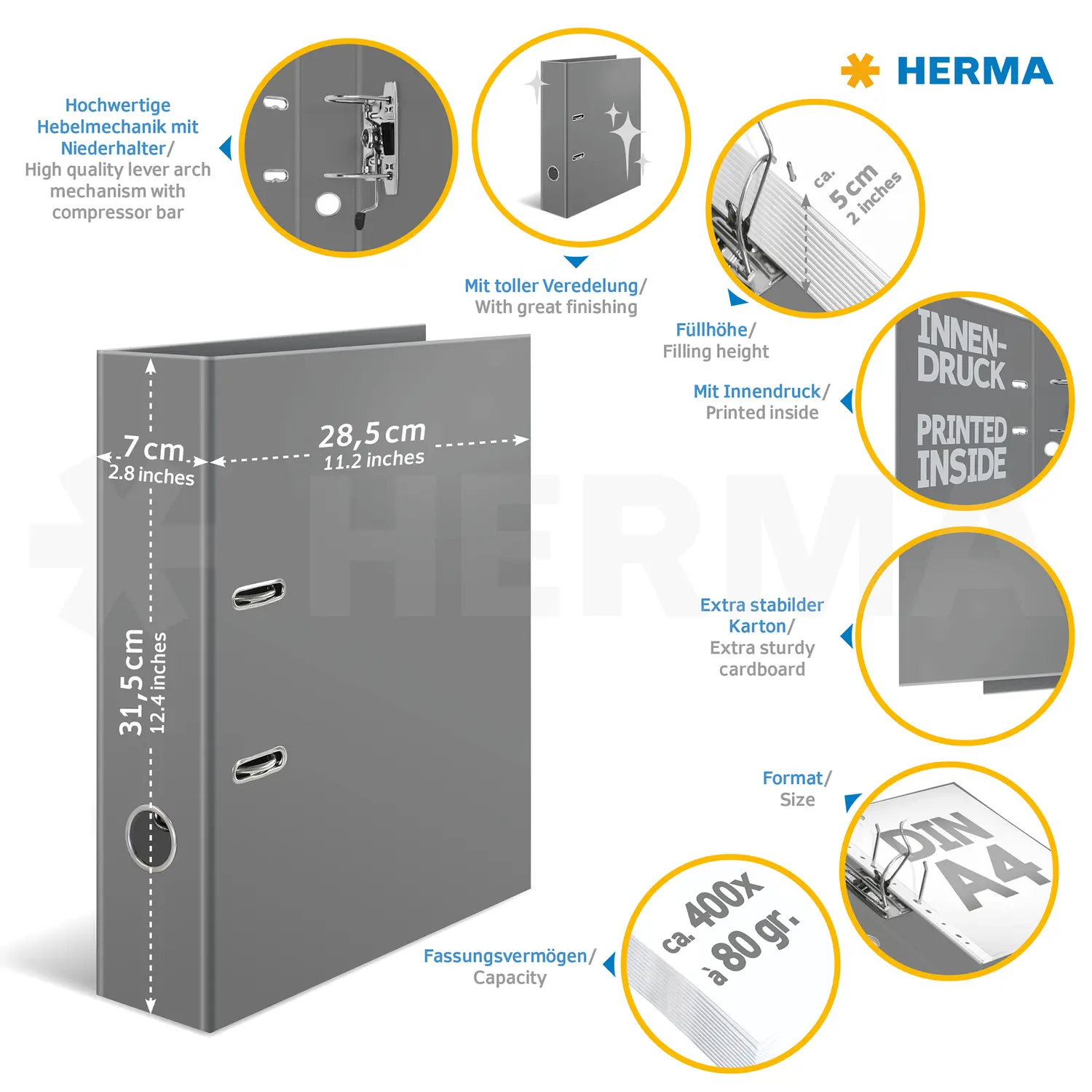 - Hochwertiger Ordner aus stabilem Karton, mit farbigem Innendruck, Rueckenbreite 70 mm, geeignet fuer DIN A 4