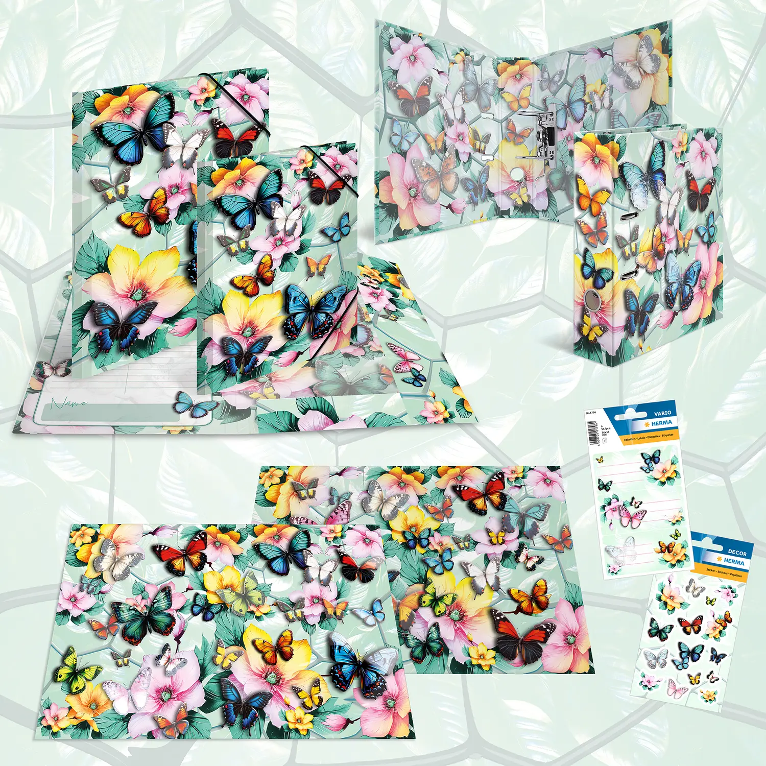 - Glänzendes, folienveredeltes Design mit Schmetterlingen und Blüten