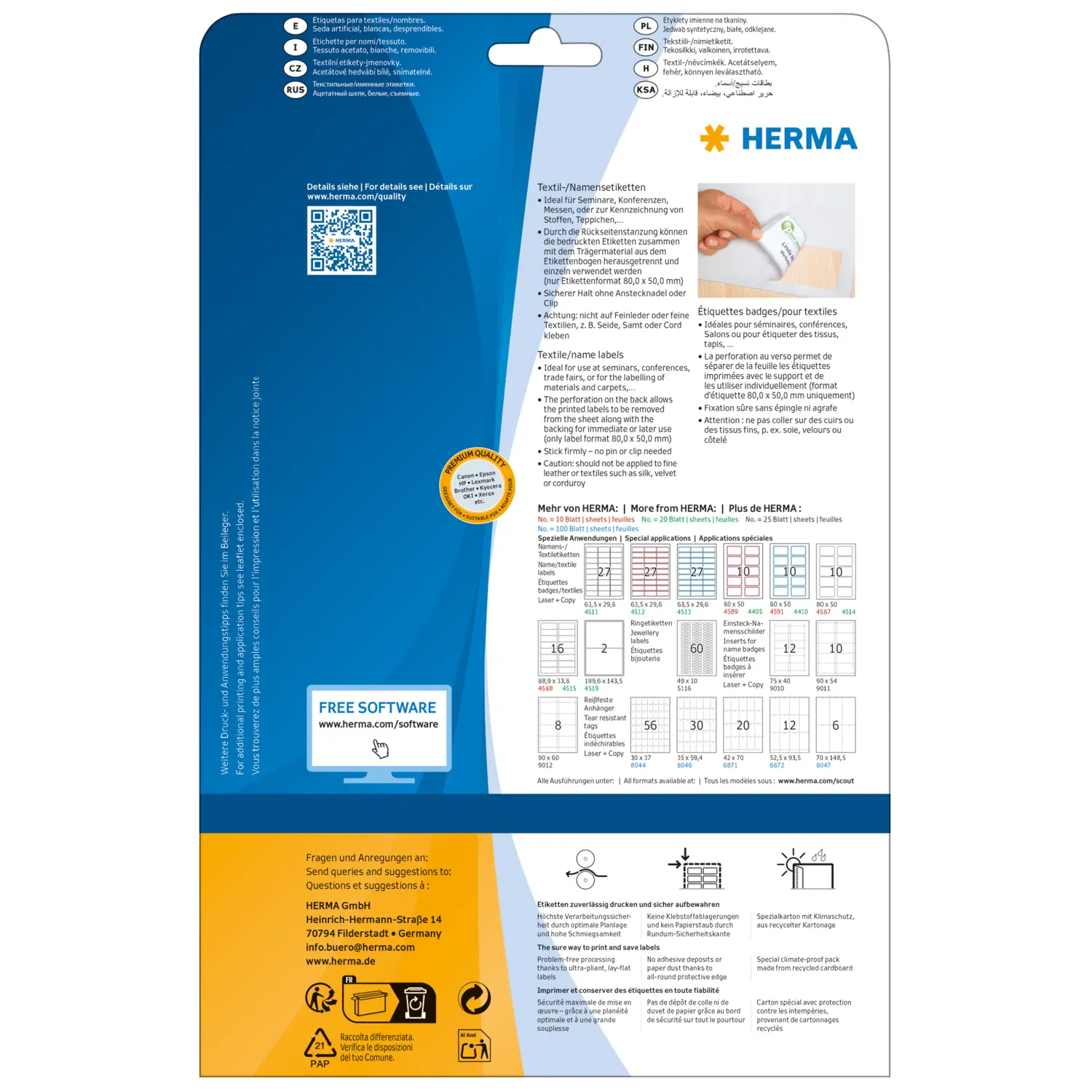 Textiletiketten lassen sich ganz einfach und professionell mit unserer kostenlosen Online-Software, dem Etiketten Assistent Online, gestalten und bedrucken.https://www.herma.de/buero-zuhause/vorlagen-software/etiketten-assistent-online/ Zur Verfügung stehen Ihnen außerdem unsere Word-Vorlagen. www.herma.de/buero-zuhause/vorlagen-software/vorlagen-fuer-word/ Die Handbeschriftung mit einem geeigneten Filzstift ist ebenso möglich.