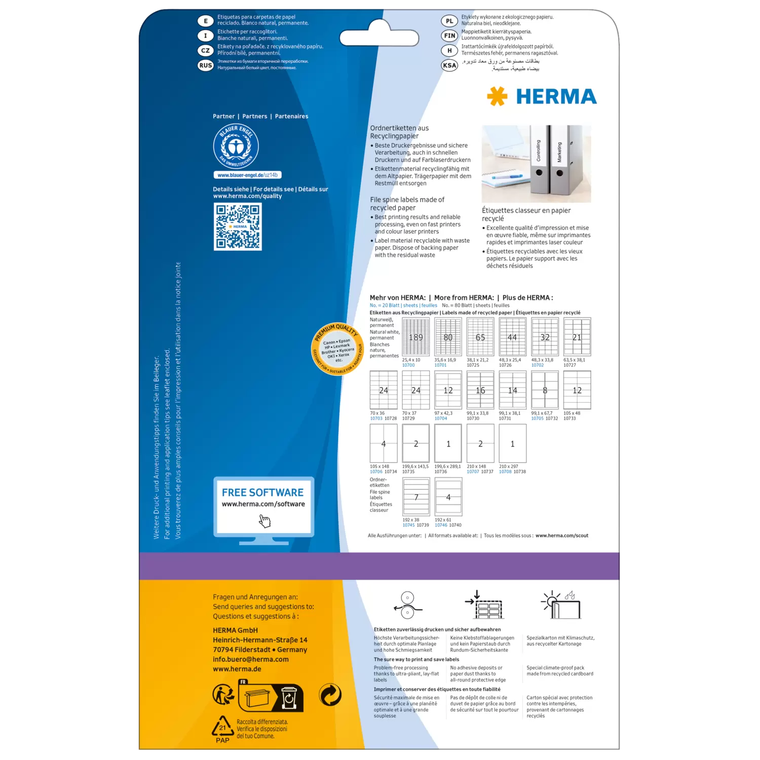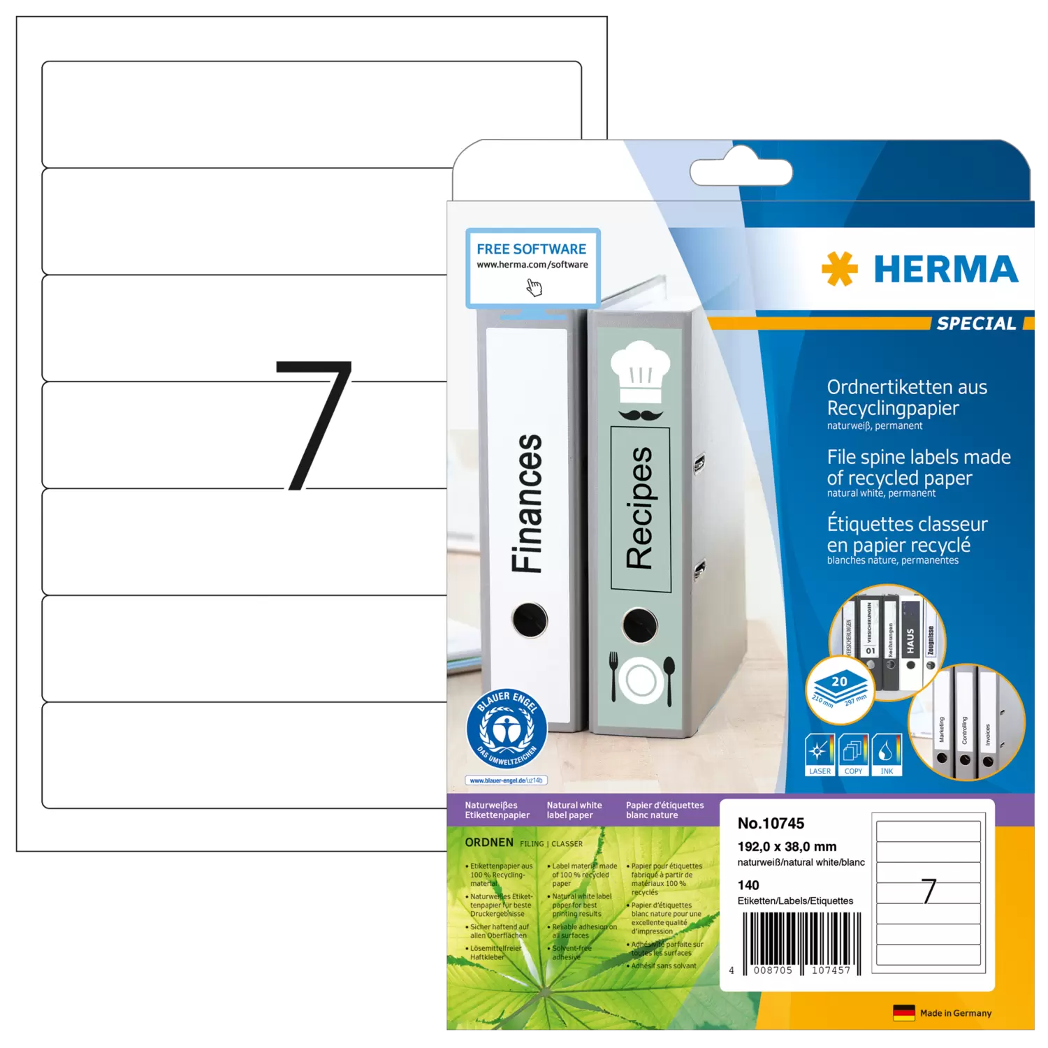 Ordneretiketten A4, 192 x 38 mm, weiß, permanent haftend, Recyclingpapier, für schmale Ordner (kurz)