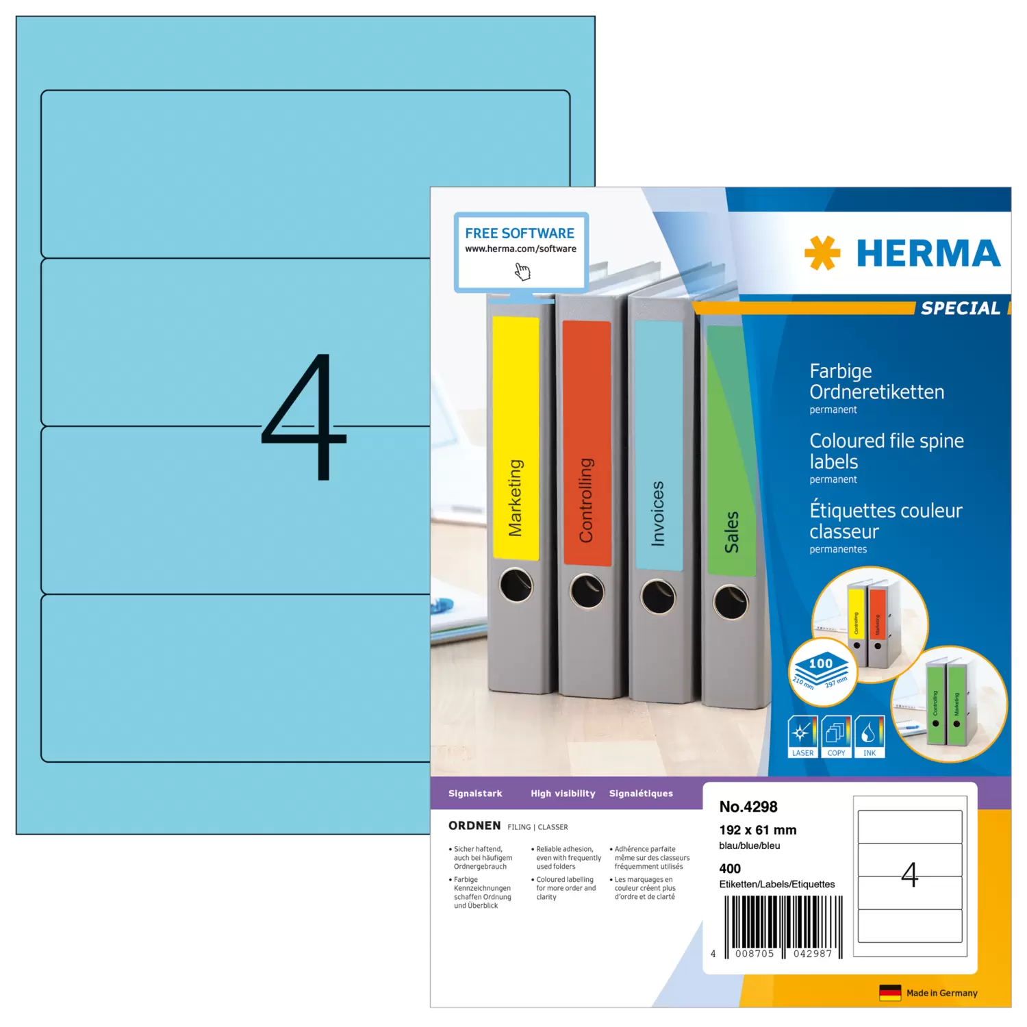 Ordneretiketten A4, 192 x 61 mm, blau, permanent haftend, für breite Ordner (kurz)