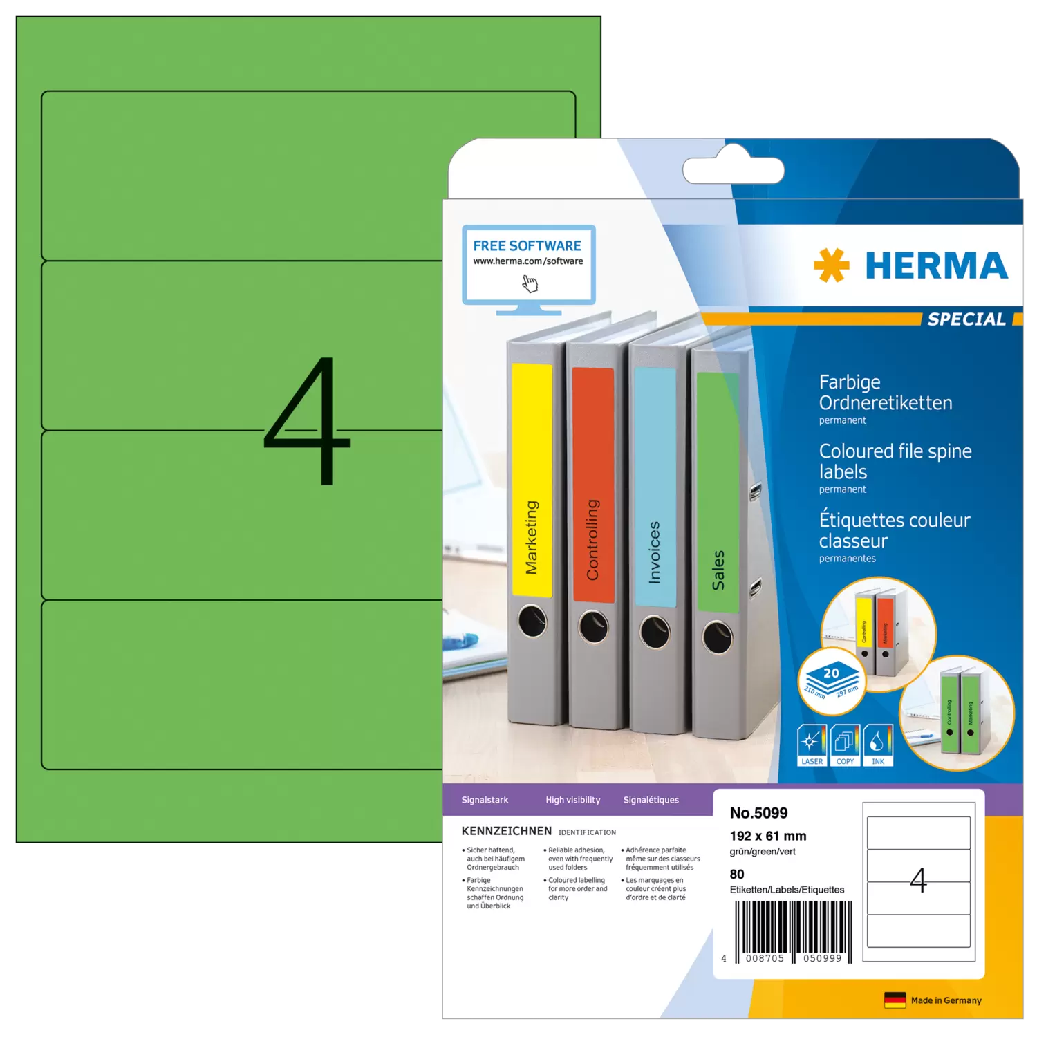 Ordneretiketten A4, 192 x 61 mm, grün, permanent haftend, für breite Ordner (kurz)