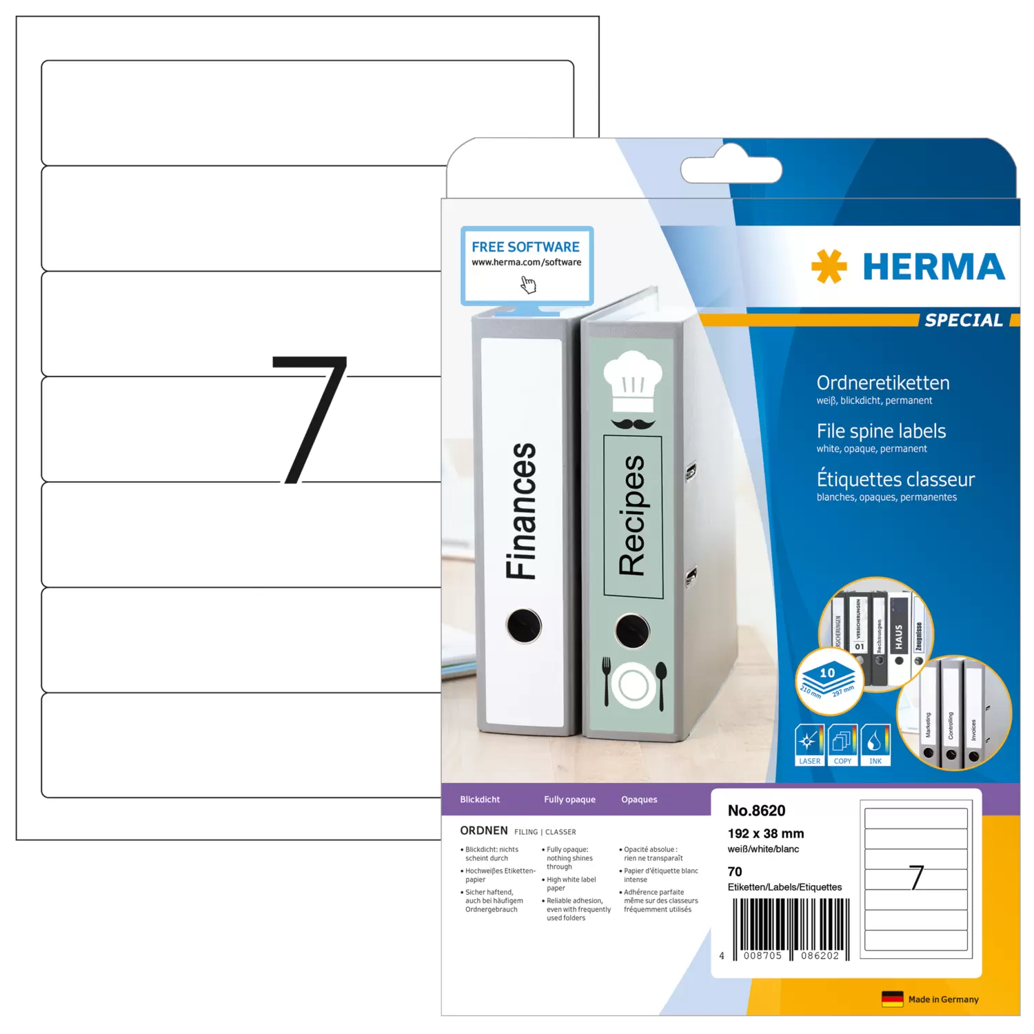 | Inhalt | 70 Etiketten / 10 Blatt |