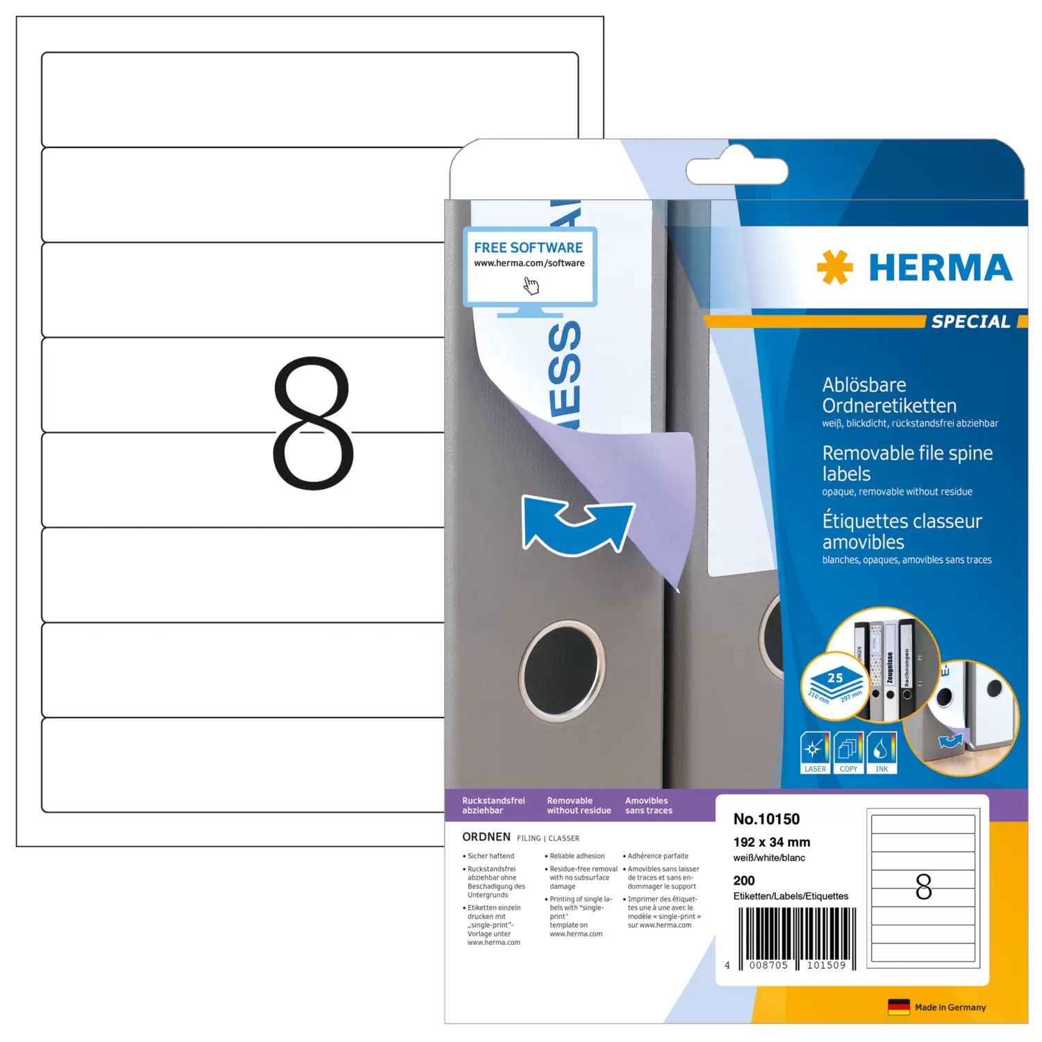 | Inhalt | 200 Etiketten / 25 Blatt |
