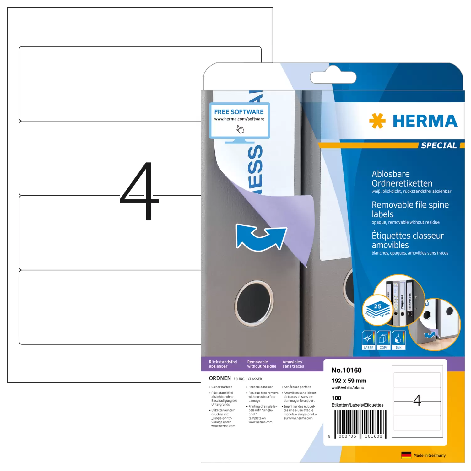 Ablösbare Ordneretiketten A4, 192 x 59 mm, weiß, blickdicht, für breite Ordner (kurz)