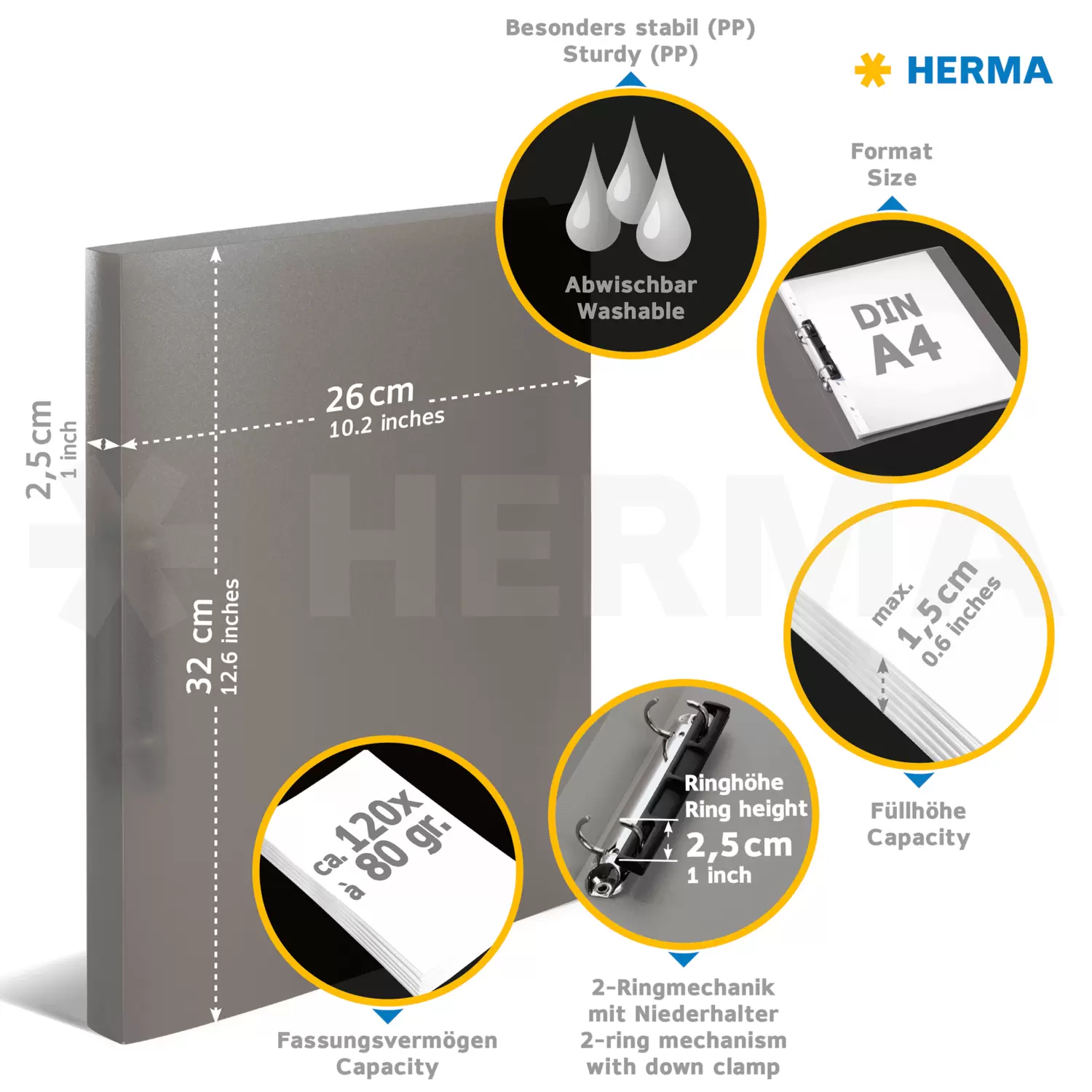 • Aus stabilem Polypropylen, Rückenbreite 25 mm