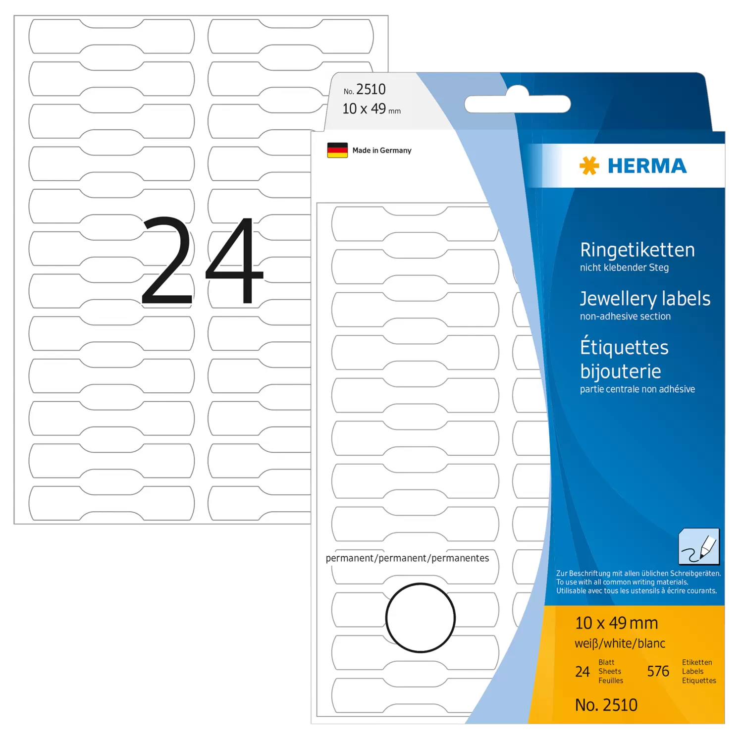 Ringetiketten 10 x 49 mm, weiß, permanent haftend, Halbkarton matt Handbeschriftung