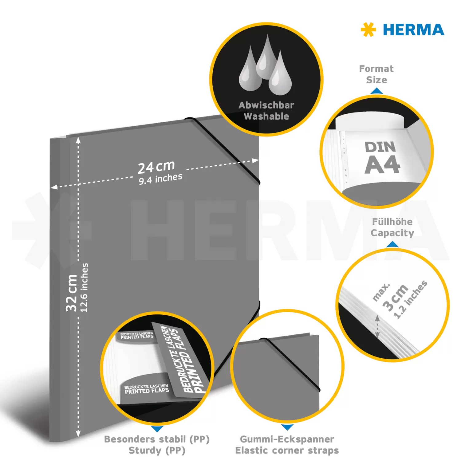 Sammelmappe mit Gummizug und 3 bedruckten Einschlaglaschen. Aus stabilem Polypropylen im Format A4. Ideal zur Aufbewahrung von losem Schriftgut.