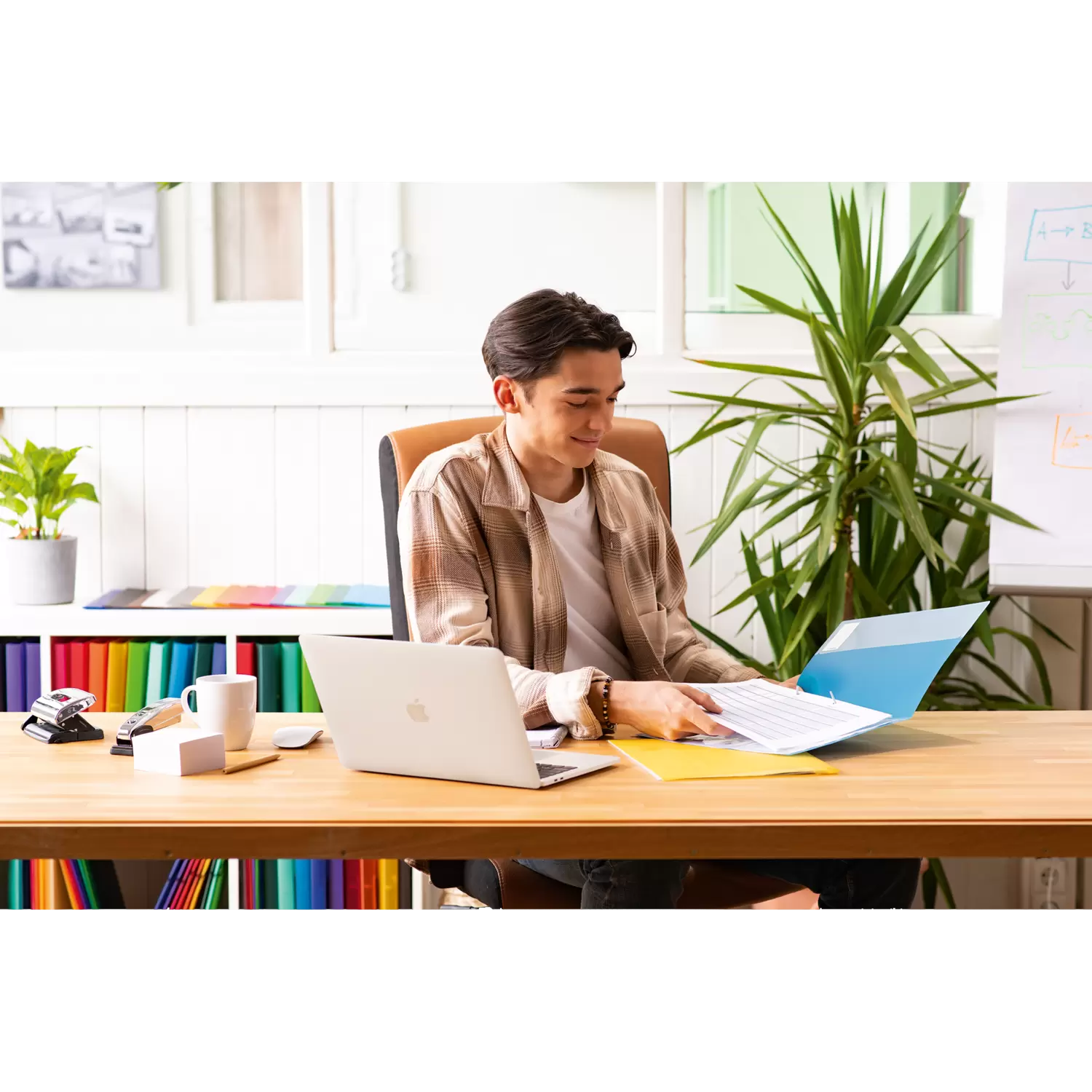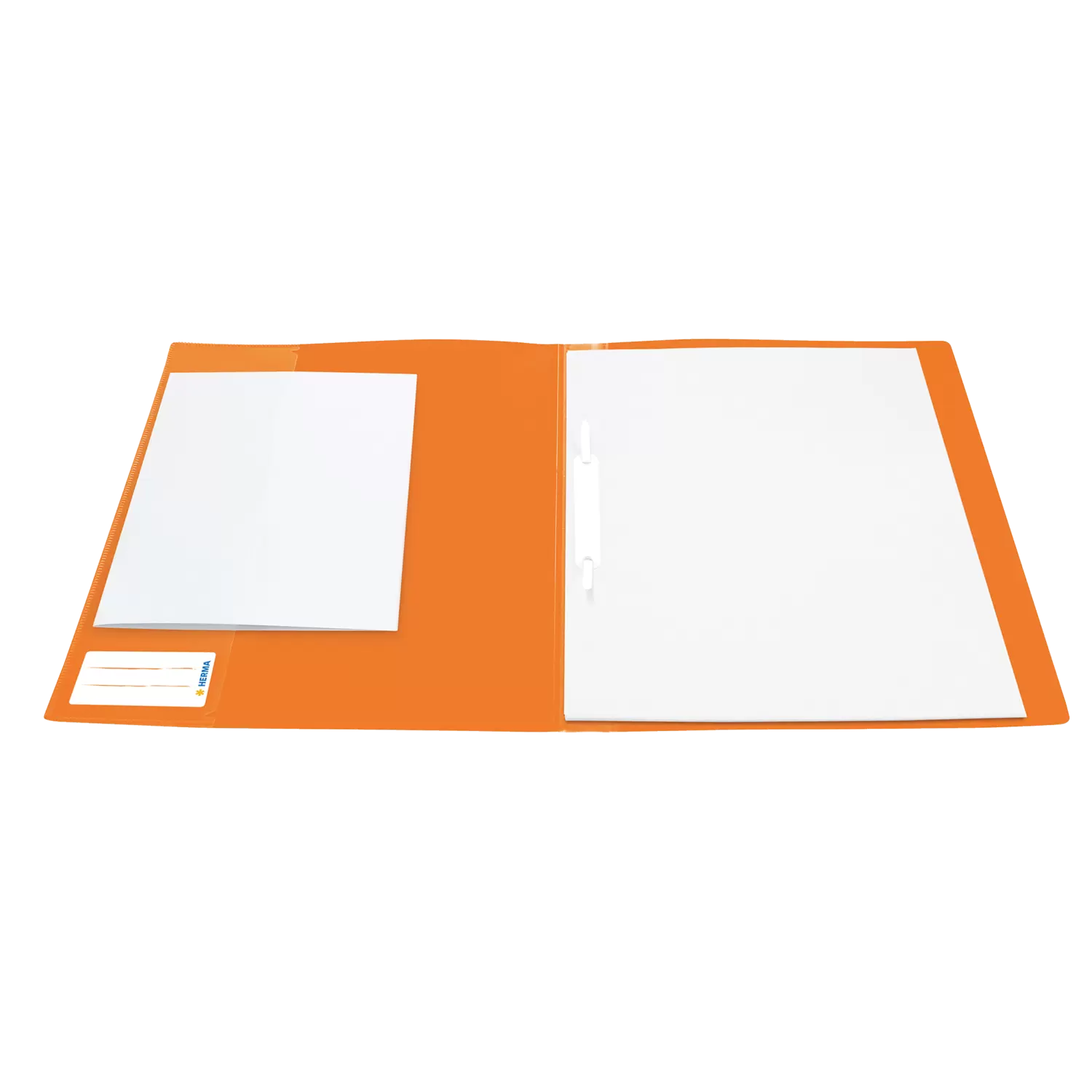 Organisation leicht gemacht: Mit diesem transzulenten Schnellhefter in orange ist es ganz einfach, Ordnung und Übersicht zu bewahren. Egal für welchen Bereich Sie den Schnellhefter aus Kunststoff benötigen, Arbeitsblätter und Dokumente in dem Format DIN A4 können einfach sortiert und abgeheftet werden. Ob für die Schule, das Büro, die Uni oder wichtige Dokumente im Alltag - durch die tranparente Fronseite oder das integrierte Beschriftungsetikett ist sofort erkennbar, was in dem Hefter enthalten ist. Die Kategorisierung von verschiedenen Aufschrieben ist durch den orangenen Hefter ganz einfach und Sie können alle Dokumente, die Ihnen wichtig sind, ordnen, sortieren und abheften wie Sie wollen. Das schmale Design und das leichte Gewicht macht das Transportieren besonders einfach. Durch das Namensschild weiß jeder sofort, wer der Besitzer des Schnellhefters ist. In die Innen angebrachte Einstecktasche können zusätzliche Blätter ohne Lochung eingesteckt werden. Der transparente Polypropylen-Umschlag schützt den Inhalt des Schnellhefters, sodass die Unterlagen auch vor Nässe und Dreck zuverlässig geschützt sind. Durch die robuste Metallzunge sind die Materialien innerhalb des Hefters fest und ein zuverlässiger Halt und Schutz ist garantiert.
