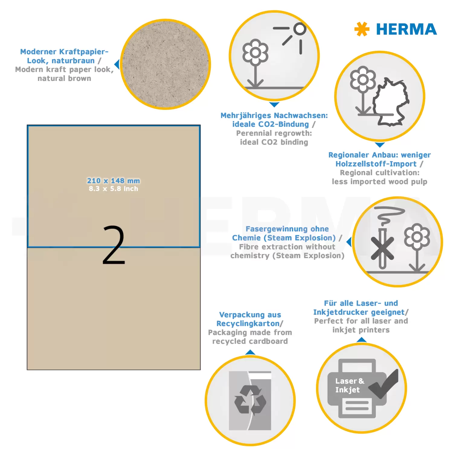Etiketten aus Silphie-Papier A4, 210 x 148 mm, naturbraun, permanent haftend