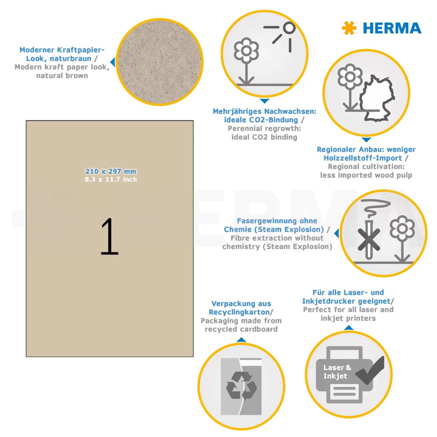 Das besondere Papier aus der Königin der ökologischen Nutzpflanzen - der Donau Silphie. Lebensraum für Bienen, zur Energiegewinnung, ideale CO2 Bindung und ein Mehrwert für das Ökosystem. Ein Beitrag zur Nachhaltigkeit. FSC® Mix Credit-zertifiziert. Anbau in Deutschland, kurze Transportwege, weniger CO2-Ausstoß. Moderner Kraftpapier-Look, aus mindestens 35% Silphie-Fasern. (Schwankungen im Farbton möglich, da umweltfreundlicher Rohstoff). Für direkten Lebensmittelkontakt geeignet. Etikettenpapier recyclebar mit dem Altpapier. Vom Etikett bis zur Verkaufsverpackung: rundum nachhaltig. Sehr gute Druckergebnisse auf allen Laser- und Inkjetdruckern, Kopierern, Farblaserdruckern und Farbkopierern. Kostenlose Softwarelösungen: www.herma.de/buero-zuhause/vorlagen-software.