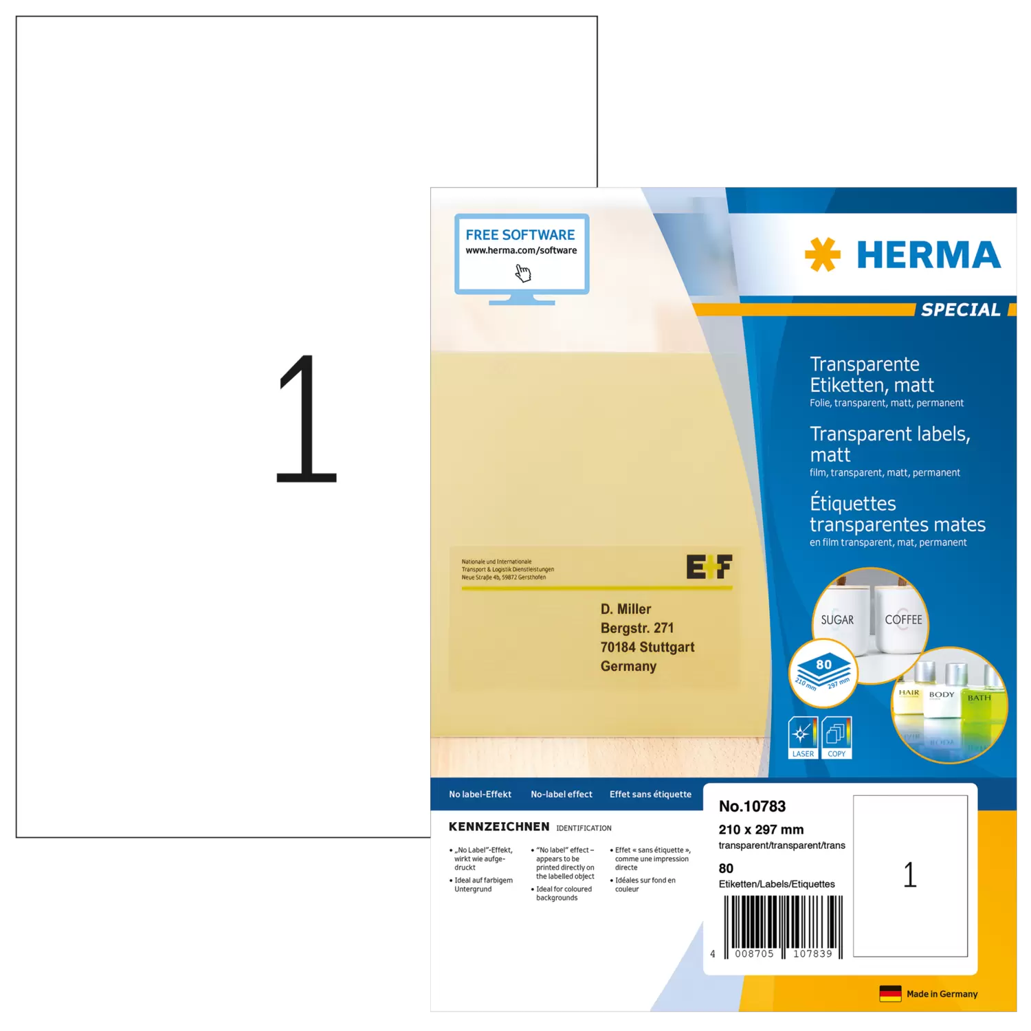 Transparente Folien-Etiketten, matt, A4, 210 x 297 mm, wetterfest, permanent haftend