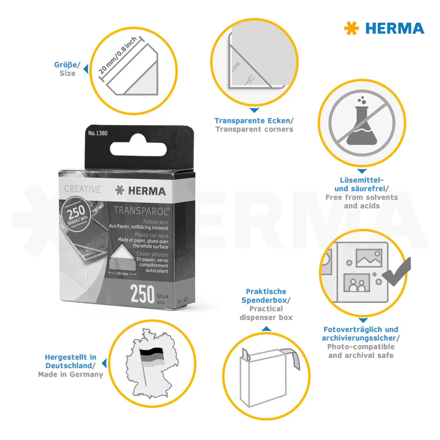 • HERMA Fotoecken Transparol selbstklebend, mit Klarsichtfolienecke zum Einstecken von Fotos und Postkarten