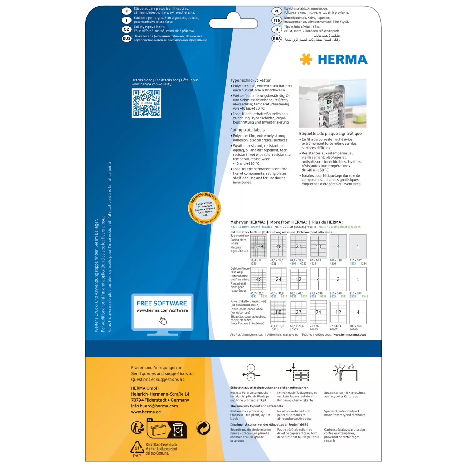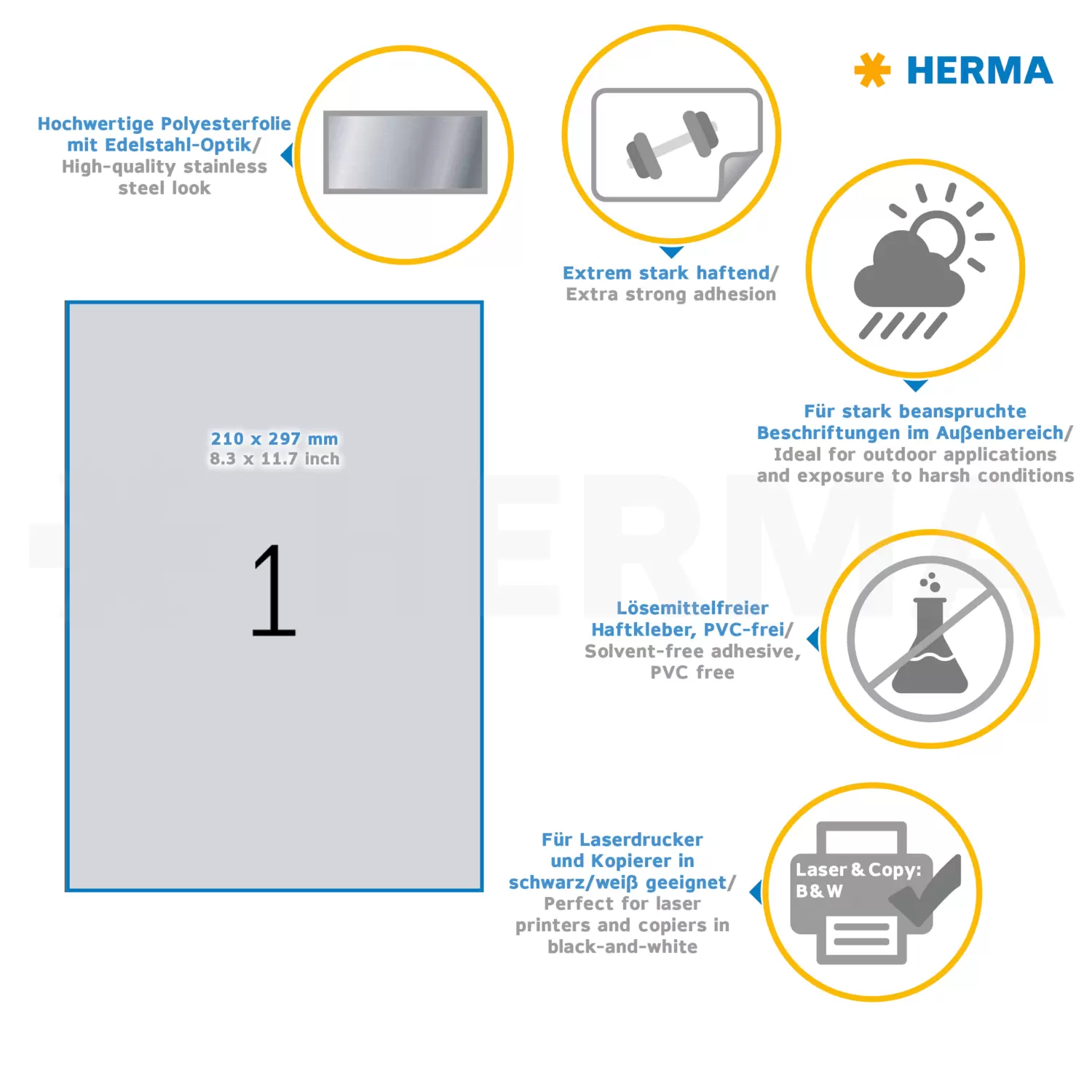 Typenschild-Etiketten, silber, A4, 210 x 297 mm, extrem stark haftend, wetterfest, reißfest