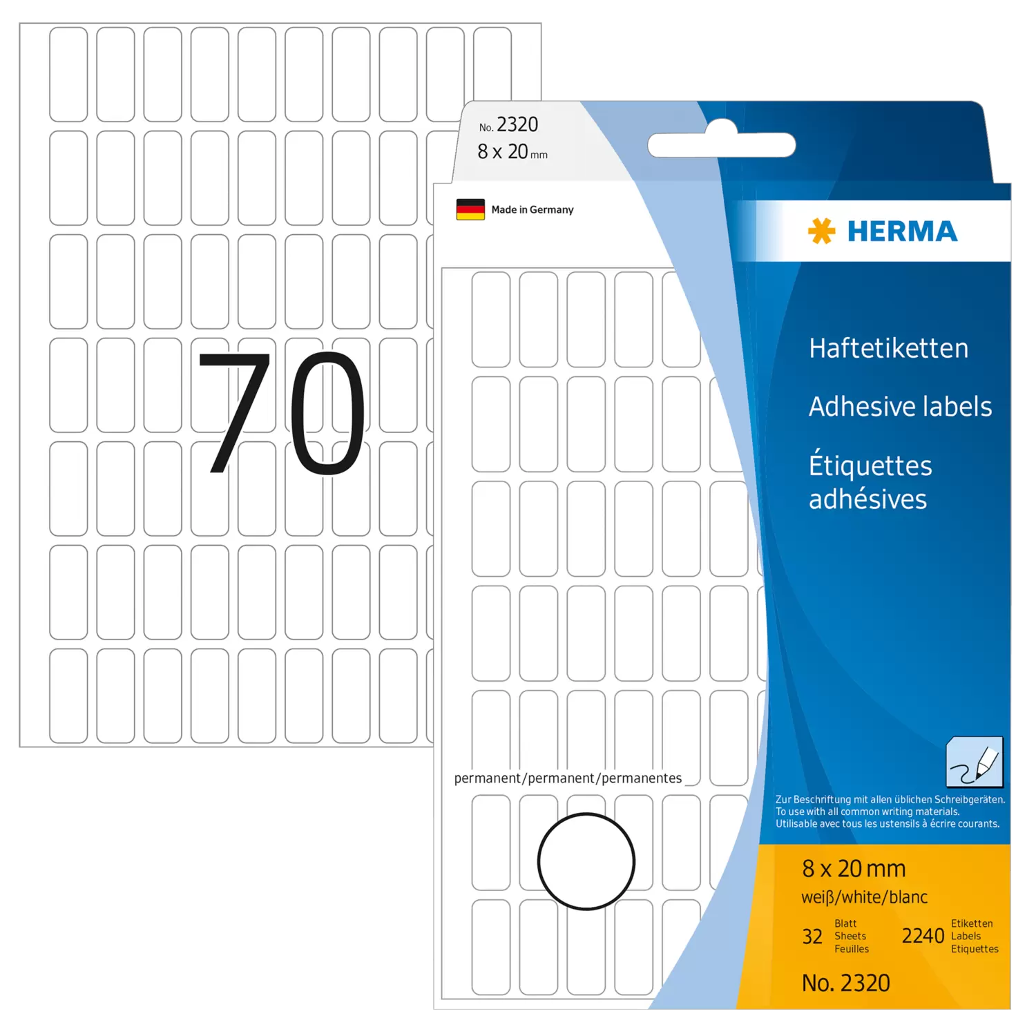 Vielzwecketiketten 8 x 20 mm, weiß, permanent haftend, zur Handbeschriftung